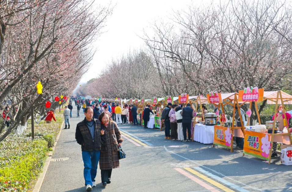 Walking along Plum Blossom Avenue, spring plum blossoms bloomed along both sides of the road under the warm sun, with petals dancing in the spring breeze and their fragrance filling the air. Visitors admired the flowers, took photos, and lingered at the more than 40 stalls of the "Beautiful Plum Market."