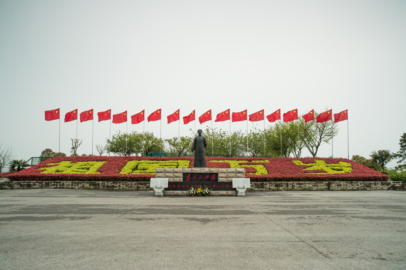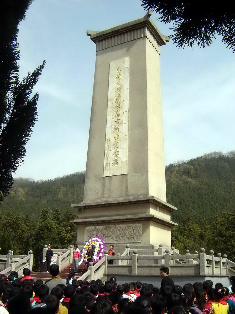 The memory tower is built under Huifeng Mountain, Baima Town, one of the main battlefields. The whole building leans against the blue mountain and faces a broad field, surrounded by verdant pines and blooming flowers. It looks very splendid and grand. The main constructions are: (1) Decorated archway, with the width of 19 meters. The characters "Hao Qi Chang Cun" (meaning imperishable noble spirit) in the horizontal inscribed board were written by the famous calligrapher Yu Tianchi; (2) Stele pavilion, with the granite stone tablet of three-meter-long and two-meter-tall, carved with the inscription written by Wang Bicheng, the former brigade commander of the 16th Brigade of the New Fourth Army. The characters "Gong Chui Qian Qiu" (meaning long-lasting achievements) in the horizontal inscribed board were written by the famous calligrapher Xiao Xian; (3) the memory tower, with the height of 16.9 meters, symbolizes the 16th brigade and No. 9 Branch of Chinese People's Anti-Japanese Military and Political College. There is the inscription of "memory tower of generals of anti-verkrampte campaign in South Jiangsu" written by Jiang Weiqing, Party Secretary of the original Jiangsu and Anhui District, political commissar of 16th Brigade of the New Fourth Army; (4) Step, 221 levels in total, which is divided into Step 4, 9, 16, 46, 47, 48 and 51 from bottom to up, meaning the 16th Brigade of the New Fourth Army, Regiment 46, 47, 48, 51 and No. 9 Branch of Chinese People's Anti-Japanese Military and Political College.