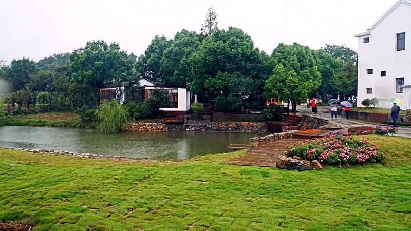 Zhangtangjiao Village is located at middle and east area of Honglan Town, near Nanjing-Xuancheng Expressway, which belongs to the important area of the Fujiabian Beautiful Village area, surrounded by agricultural bases featured with leisure and planting, such as 1,000-mu Crabapple Blossom Garden and Sizhao Garden. Once entering the village, a clean lake comes into our sight, near the lake, a teapot-like decoration, symbolizes the featured industry here - tea culture.