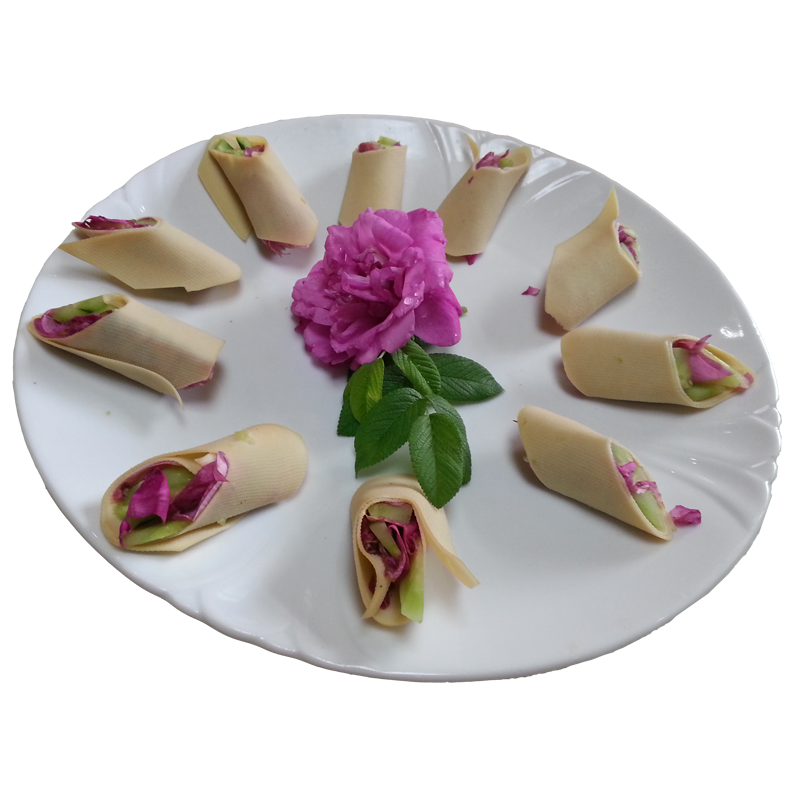 It is located in the central position of Nanjing Modern Agricultural Demonstration Area at Municipal Level-Huanshan River Modern Agricultural Park of Shiqiu Town, Lishui District. It is situated at the foot of a hill and beside a stream, thus the air is very fresh. Planning land area of Phase I is 1,000mu, to create a unique rose kingdom in regions south of the Yangtze River. The working staff of the rose park are very smart. They cook the unique rose feast with fresh roses, which you may taste:
