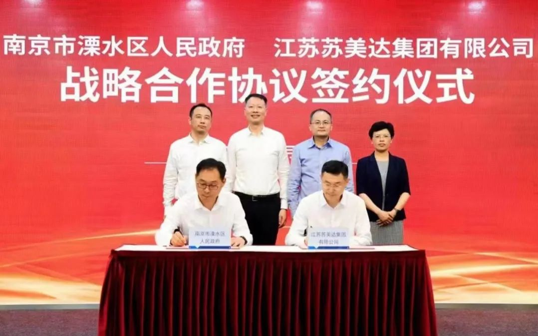 7月7日,溧水区政府与江苏苏美达集团有限公司签订战略合作协议,双方将本着“政企互动、市场运作、互惠共赢、共同发展”的原则,充分发挥各自优势,围绕供应链产业链合作、生态环境基础设施建设、贸易便利化服务等方面开展系列深入合作,促进共同发展。区委书记张蕴,区长缪秀梅,副区长翟晓黎,苏美达股份有限公司党委书记、董事长杨永清等参加。