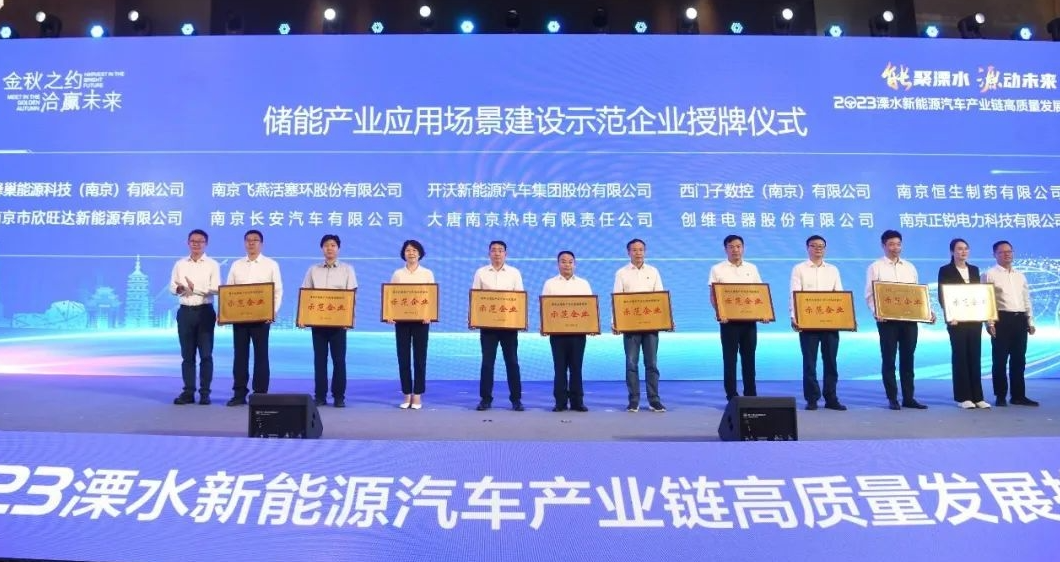 区委常委、常务副区长唐慧炜作溧水产业高质量发展投资环境推介。区委常委、副区长刘佳,市供电公司副总经理胡伟共同为飞燕公司、西门子数控、创维电器、恒生制药、正锐电力等10家储能产业应用场景建设示范企业授牌。溧水区招商合作伙伴普华永道发布《溧水新能源汽车产业白皮书》。与会嘉宾共同观看《溧水造集令》主题宣传片。