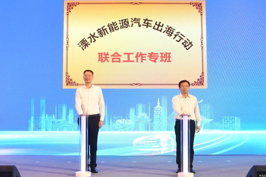 张蕴、陈平共同为溧水新能源汽车出海行动联合工作专班揭牌