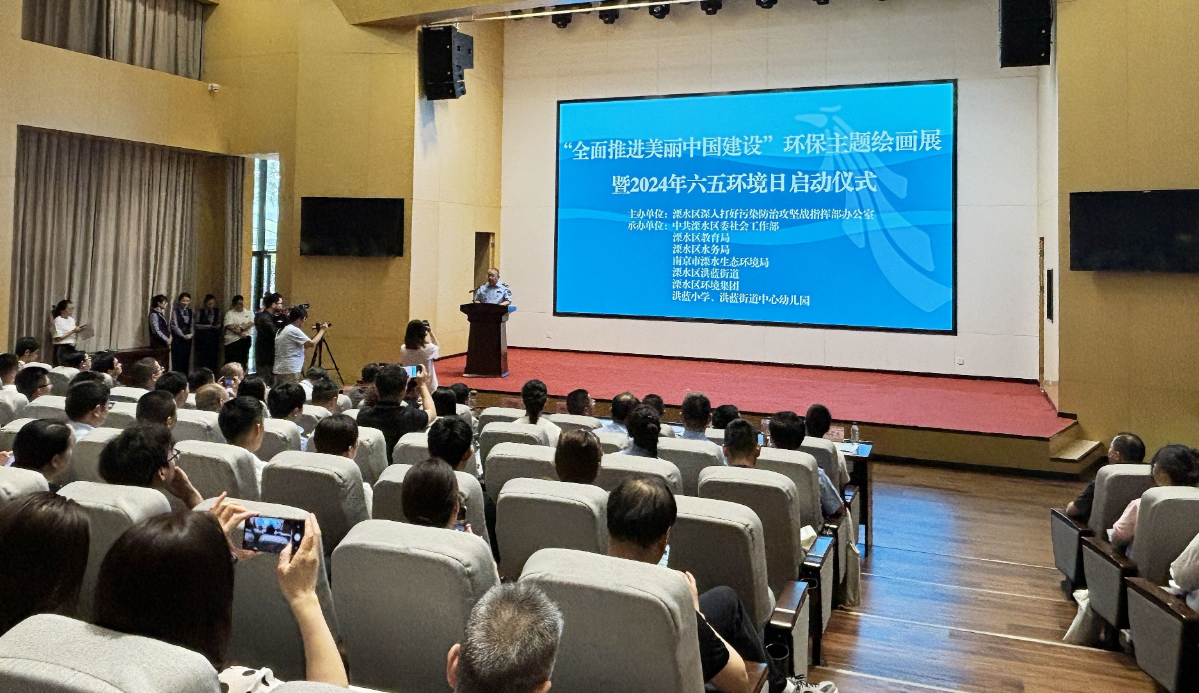 今年6月5日,是第53个世界环境日,也是中国第10个环境日。当天上午,溧水区洪蓝街道科创中心一楼报告厅内人声鼎沸、气氛热烈,“全面推进美丽中国建设”环保主题绘画展暨2024年六五环境日启动仪式在这里举行。此次活动由溧水区深入打好污染防治攻坚战指挥部办公室主办,区委社会工作部、区教育局、区水务局、溧水生态环境局、洪蓝街道、区环境集团、洪蓝小学、洪蓝街道中心幼儿园共同承办,全区各相关部门、镇(街)、“无废城市细胞”授牌单位代表以及企业、居民、学生等代表齐聚一堂,共同见证这一环保盛事。