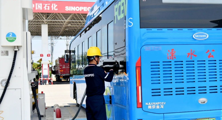 近日,溧水区首座商业加氢站在柘塘东加油站投入运营,每日加氢能力达500公斤,一辆氢能源公交车不到10分钟即可完成氢气加注。
