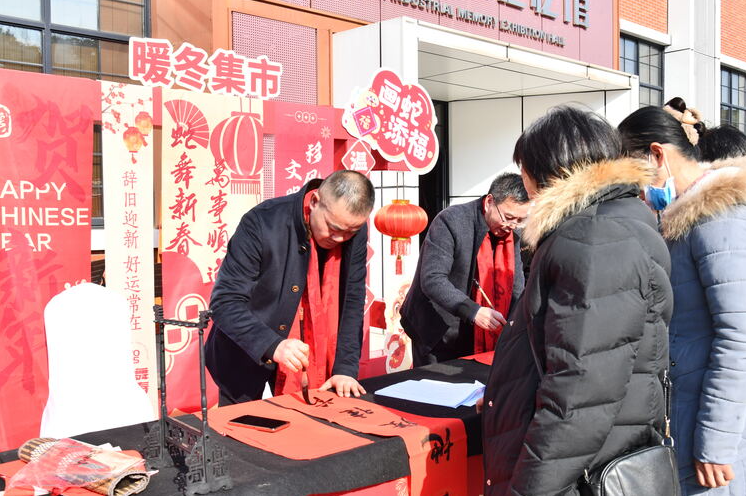 在暖冬集市上,写春联、送对联的摊位,吸引了众多居民驻足参与。“茶亦醉人何必酒,书能香我无须花”“旧岁慢吟书卷里,新年沉醉墨香中” 书法家们挥毫洒墨,将一副副充满书香的春联、一张张饱含真情的“福”字诉诸笔墨,寄托对新一年美好的希冀与憧憬。
