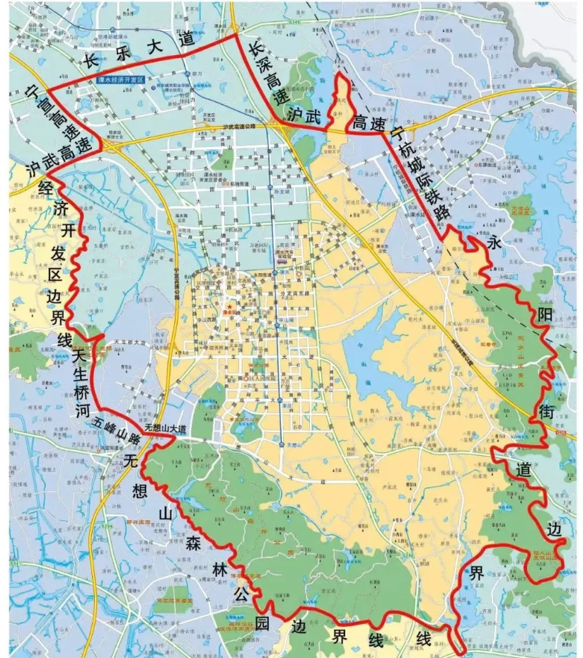 (3)东屏街道:辖区内沪武高速以南—宁杭城际铁路以西区域。