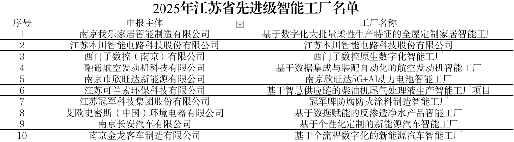 近日,江苏省工信厅公布2025年省先进级智能工厂名单,溧水区10家企业上榜,涵盖新能源、高端装备、智能家居等领域。