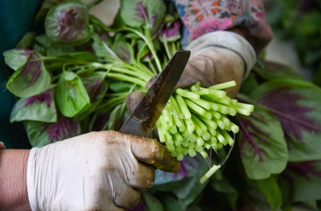 粗分拣过后,工人对每一棵蔬菜进行精细加工。