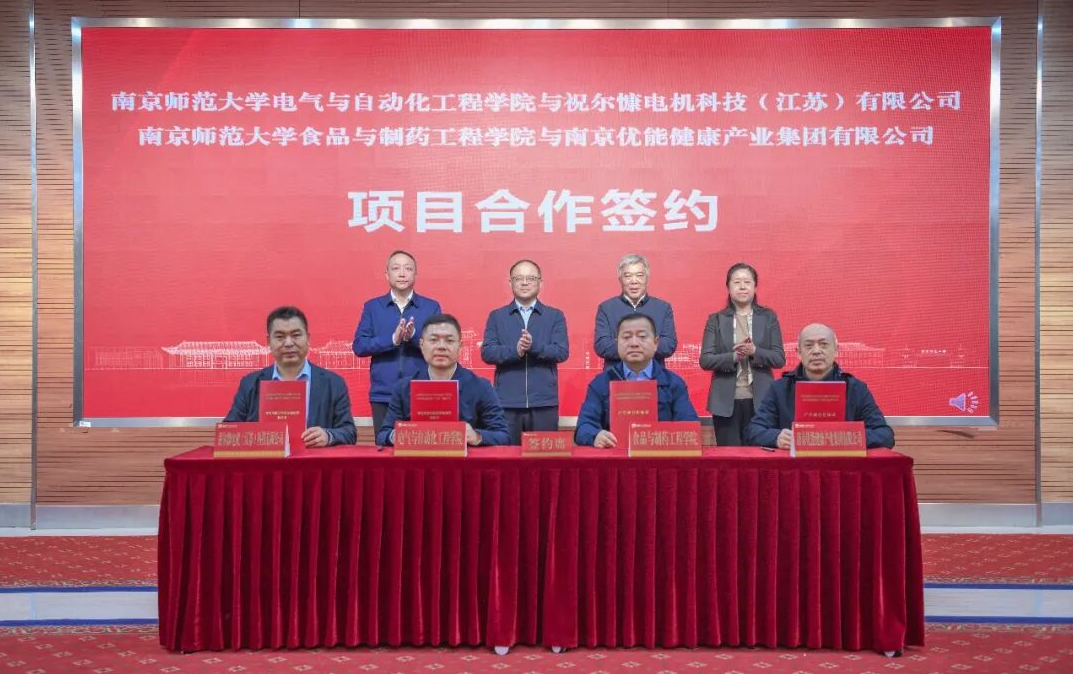会上,南京师范大学电气与自动化工程学院与祝尔慷电机签订研究生联合培养基地建设协议,南京师范大学食品与制药工程学院与优能集团签订产学研合作协议。会前,区领导一行参观了南京师范大学食品与制药工程学院、南京师范大学创新谷。
