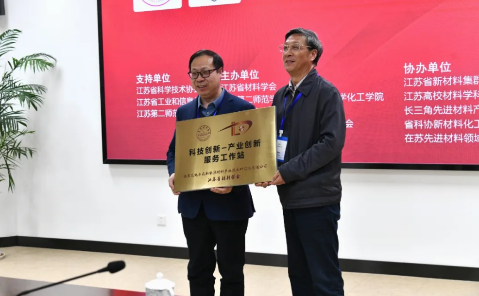 活动中,江苏省材料学会为南京龙电华鑫新能源材料产业技术研究院有限公司颁发“科技创新-产业创新服务工作站”牌匾,推动创新资源精准服务企业。