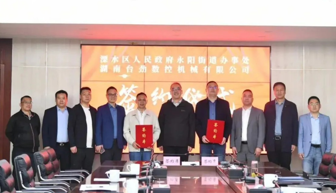 4月12日下午,溧水区永阳街道与湖南台劲数控机械有限公司举行签约仪式,湖南台劲数控机械年产2000台高端数控机床生产基地项目正式落户永阳街道,为溧水国家级数控机床功能部件产业集群再添强链新成员。