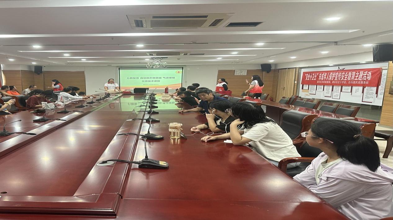 首先,溧水区红十字会的专业讲师郁海华老师结合真实案例和实操演示,重点向大家讲解了心肺复苏(CPR)、自动体外除颤器(AED)使用、气道梗阻急救法(即海姆立克急救法)这三项至关重要的应急救护技术。郁老师耐心细致地分步骤讲解动作要领,强调“黄金救援4分钟”的重要性。