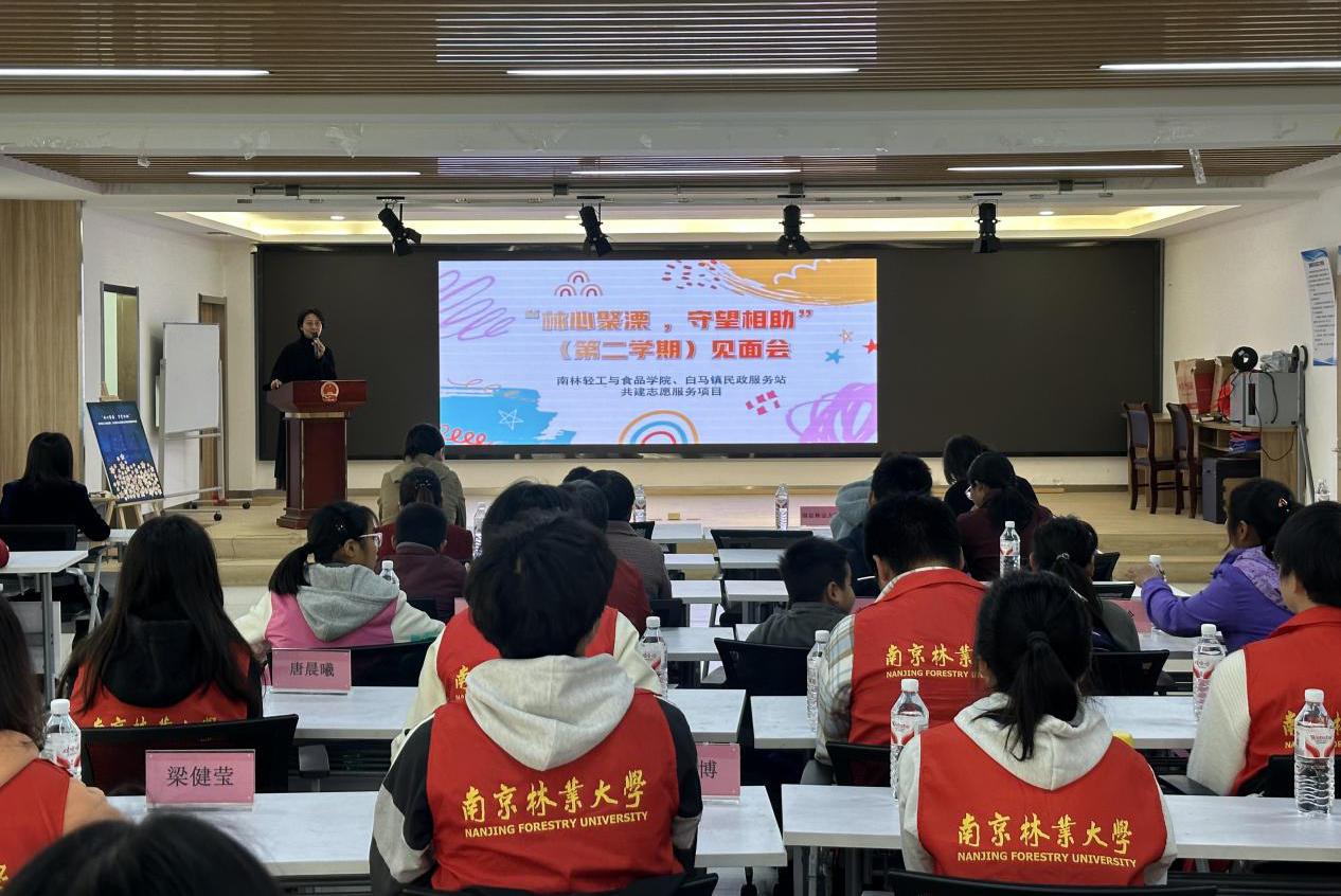 为搭建校地志愿服务项目共同建设桥梁,精准对接辖区青少年帮扶需求,11月15日上午,白马镇民政服务站与南京林业大学轻工与食品学院在白马镇新时代文明实践联合举办“林心聚溧,守望相助”共建志愿服务项目第二期见面会。白马镇民政办与白马镇民政服务站、南林大轻工与食品学院、溧水区博琨社会工作服务中心相关人员,16名大学生志愿者、12组青少年家庭代表共同参与本次见面会。