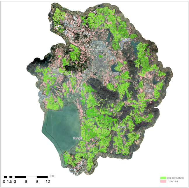 图1:2011-2021年溧水区高标准农田建设项目分布图