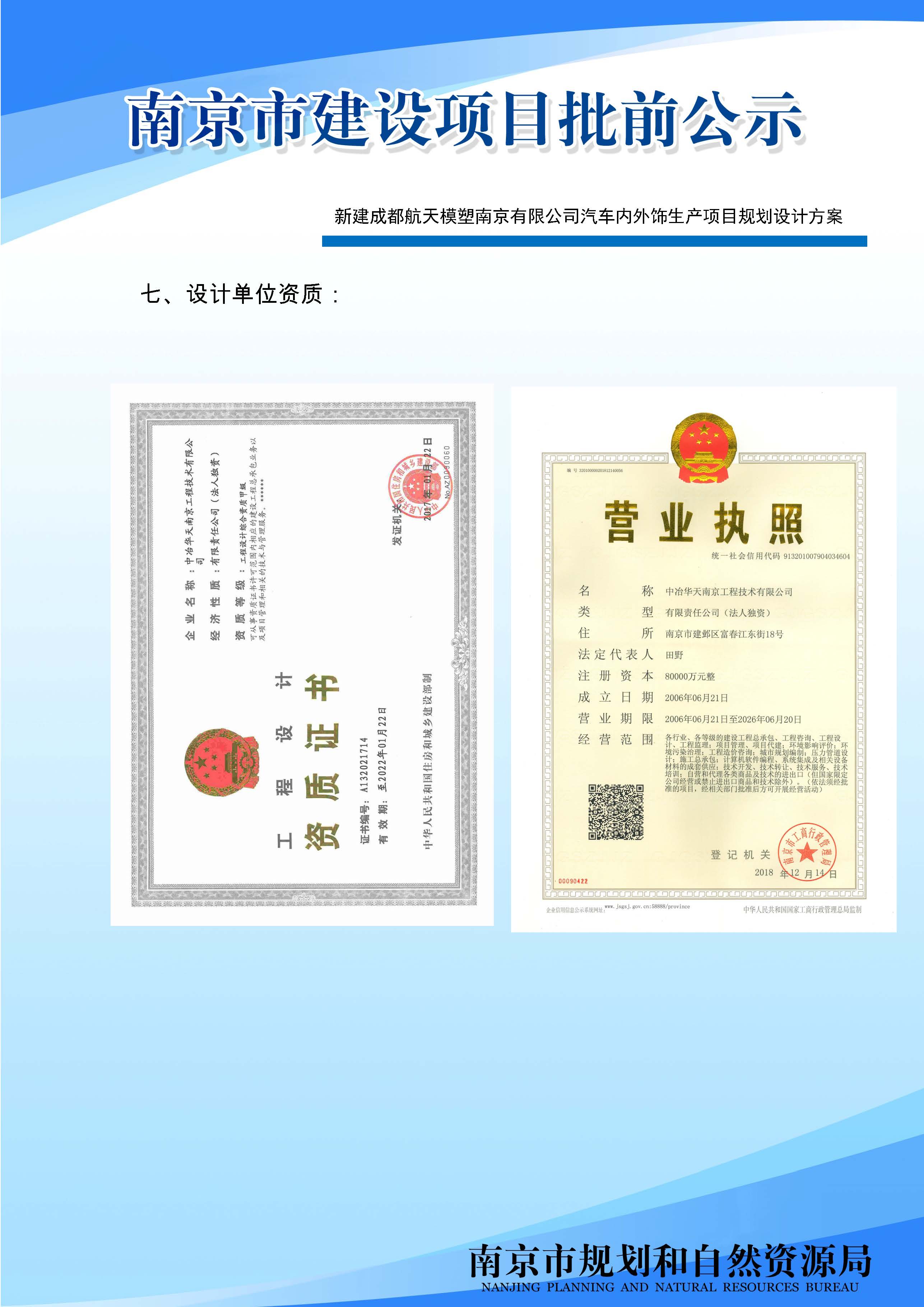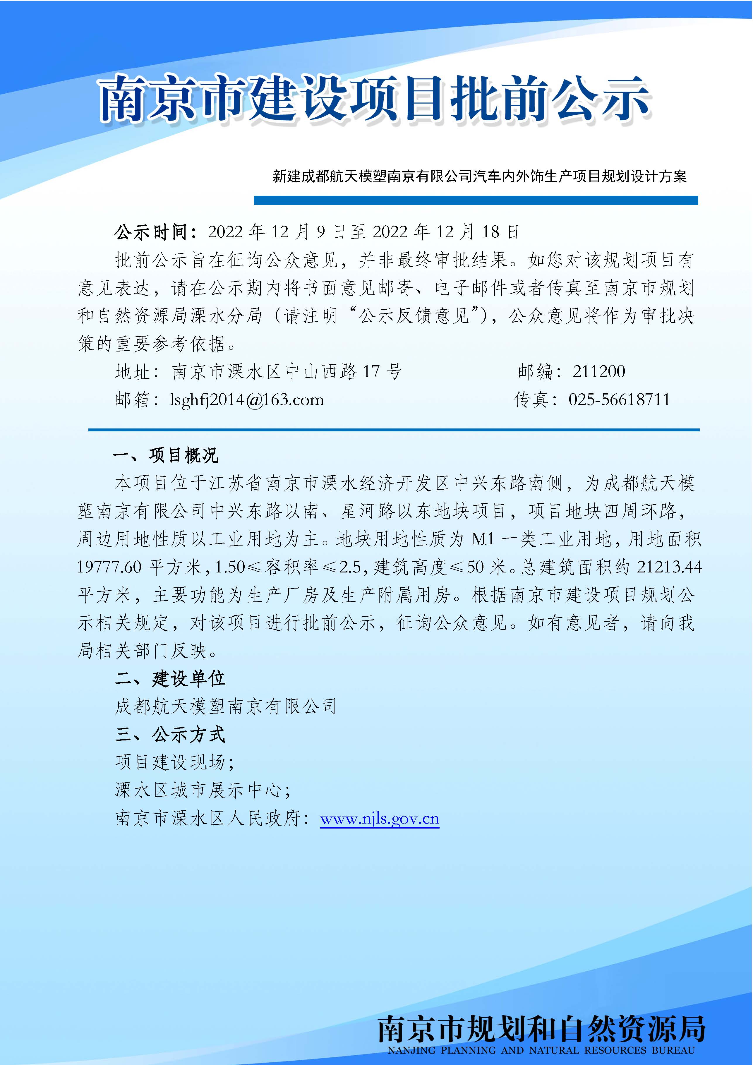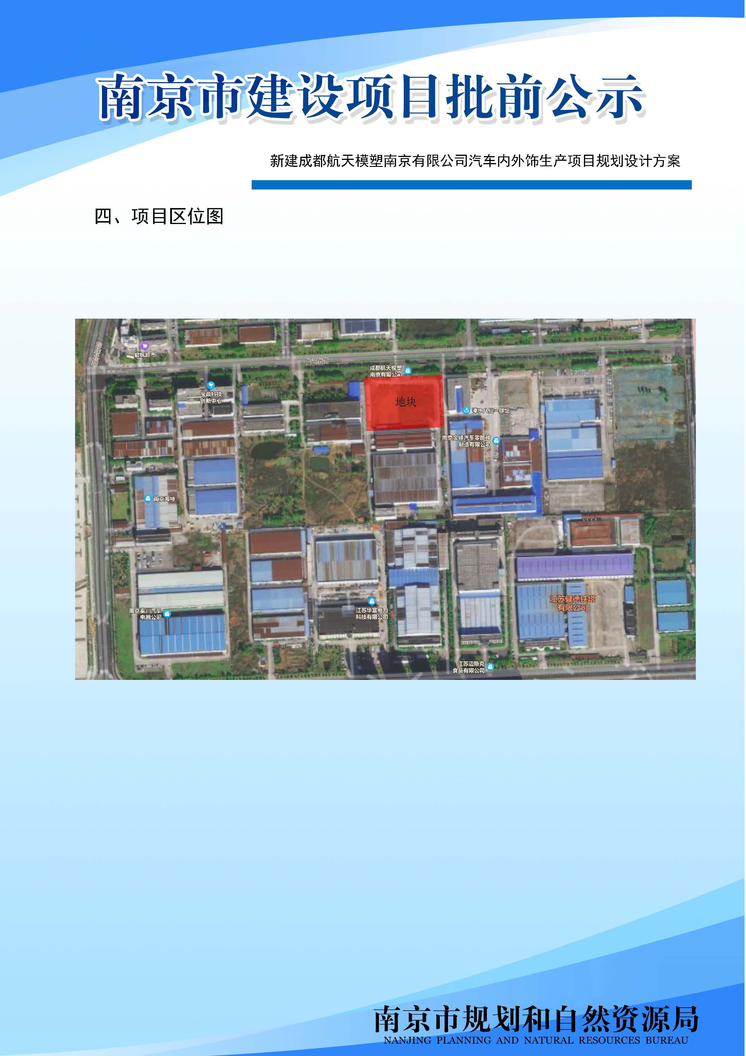 新建成都航天模塑南京有限公司汽车内外饰生产项目规划设计方案公示