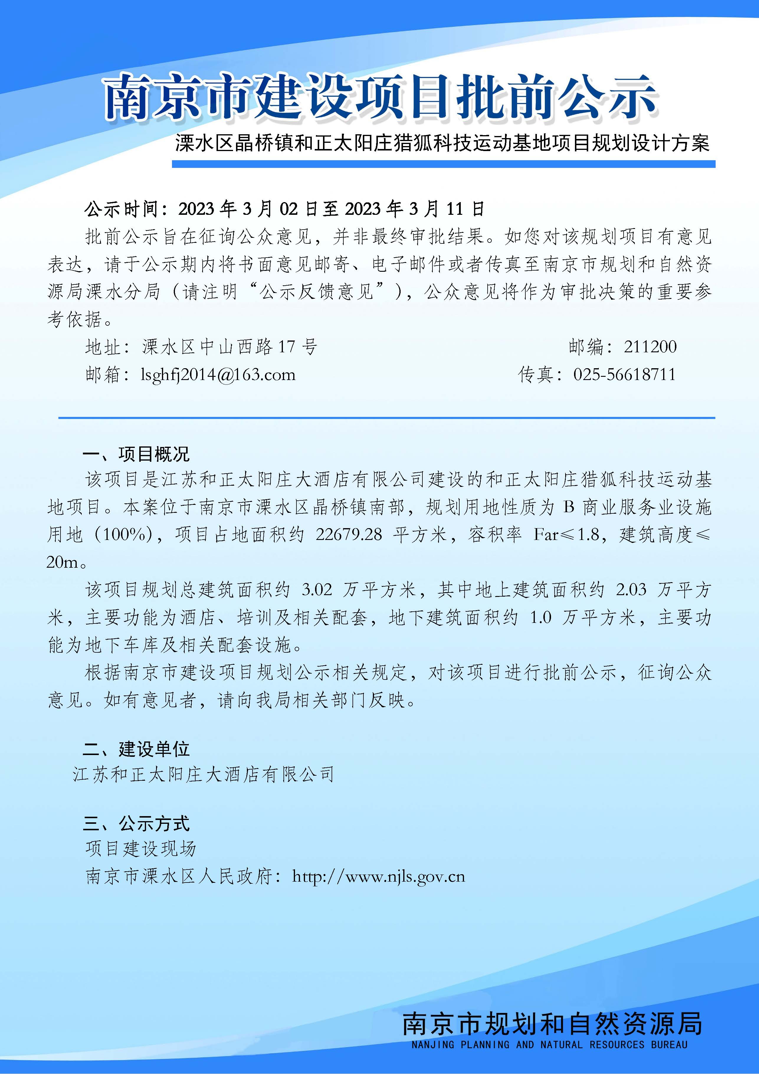 信息名称: | 溧水区晶桥镇和正太阳庄猎狐科技运动基地项目规划设计方案批前公示 | ||