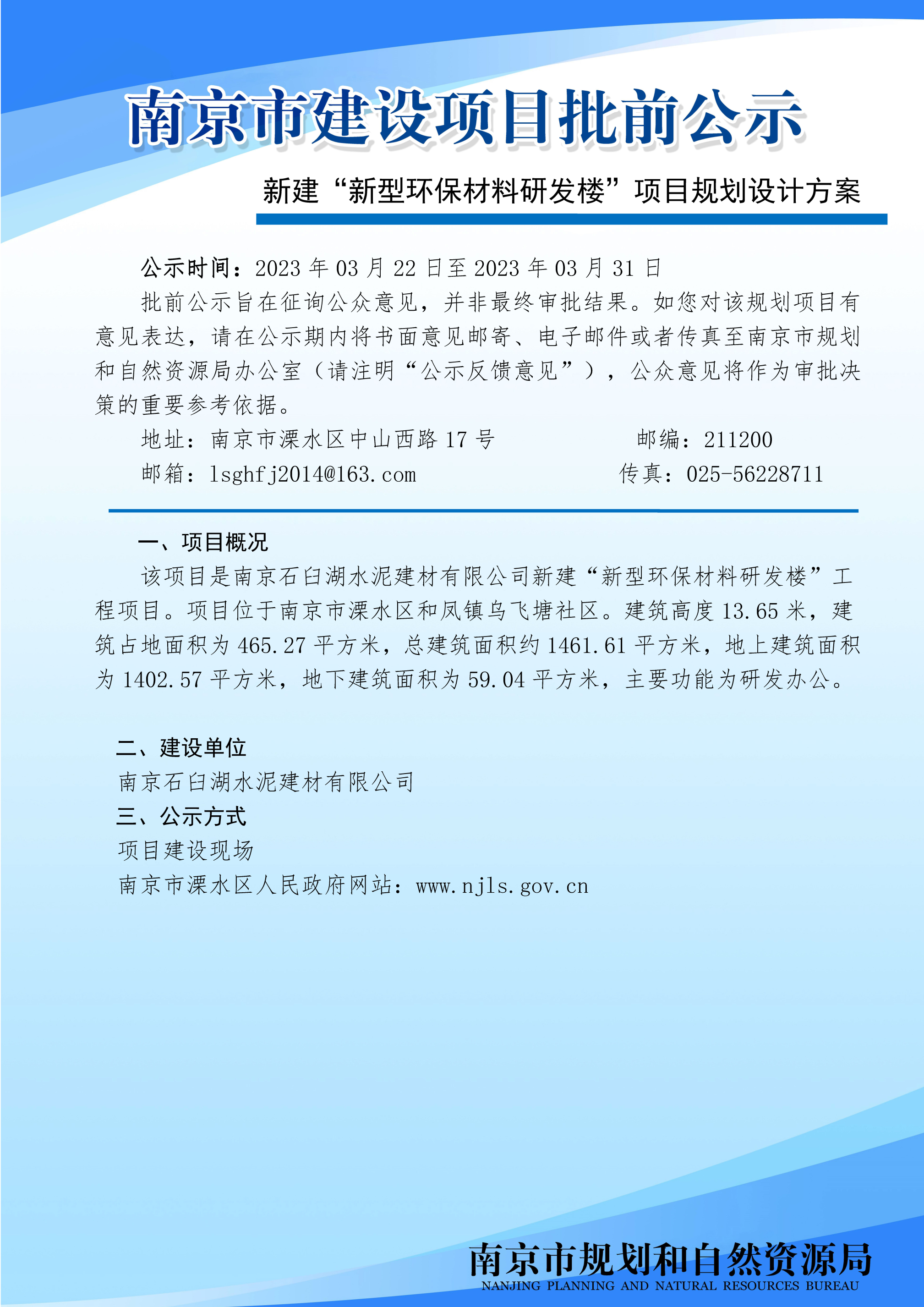 新建“新型环保材料研发楼”项目规划设计方案批前公示