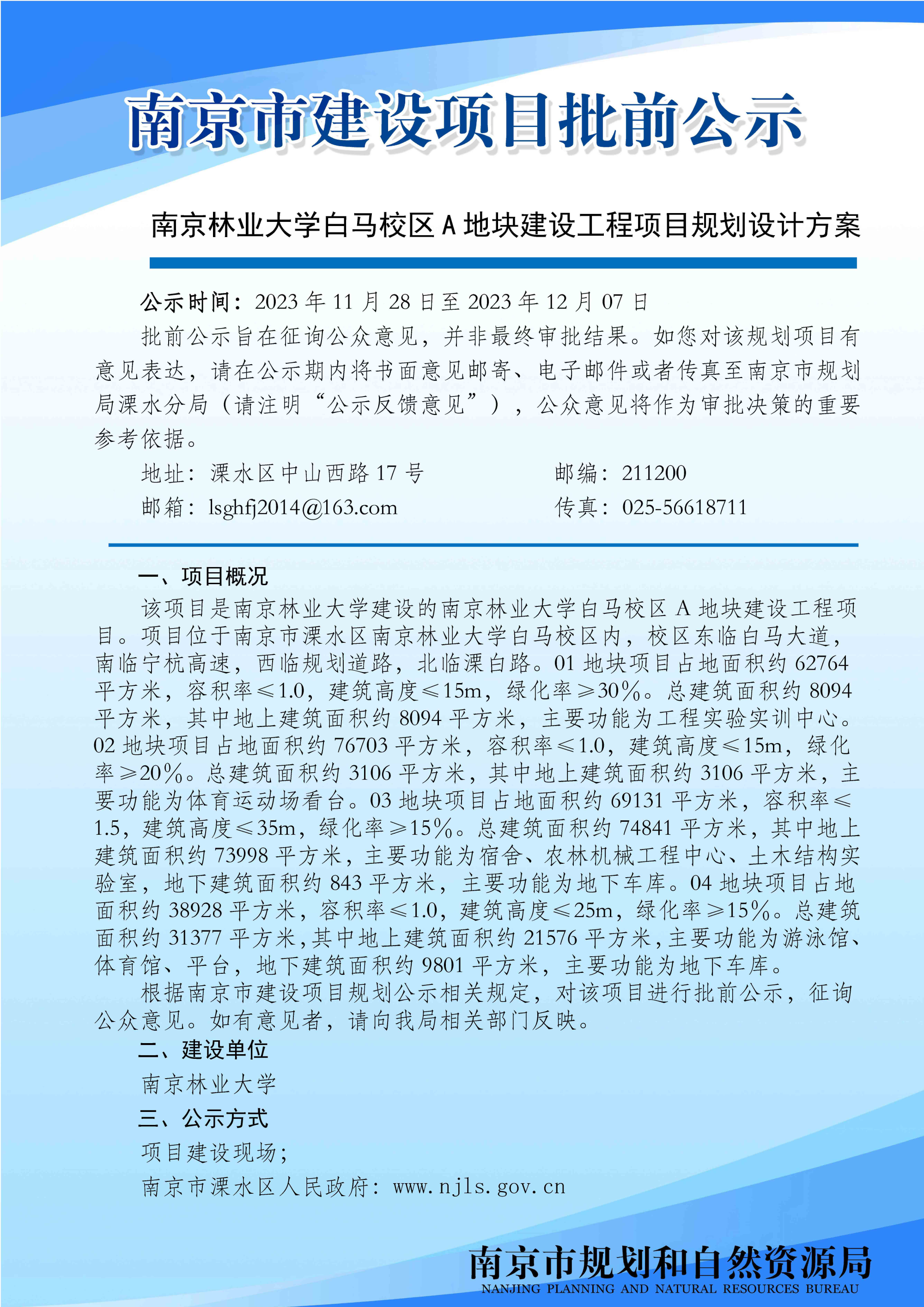 | 文 号: | 关 键 词: | 南京林业大学白马校区A地块建设 | |