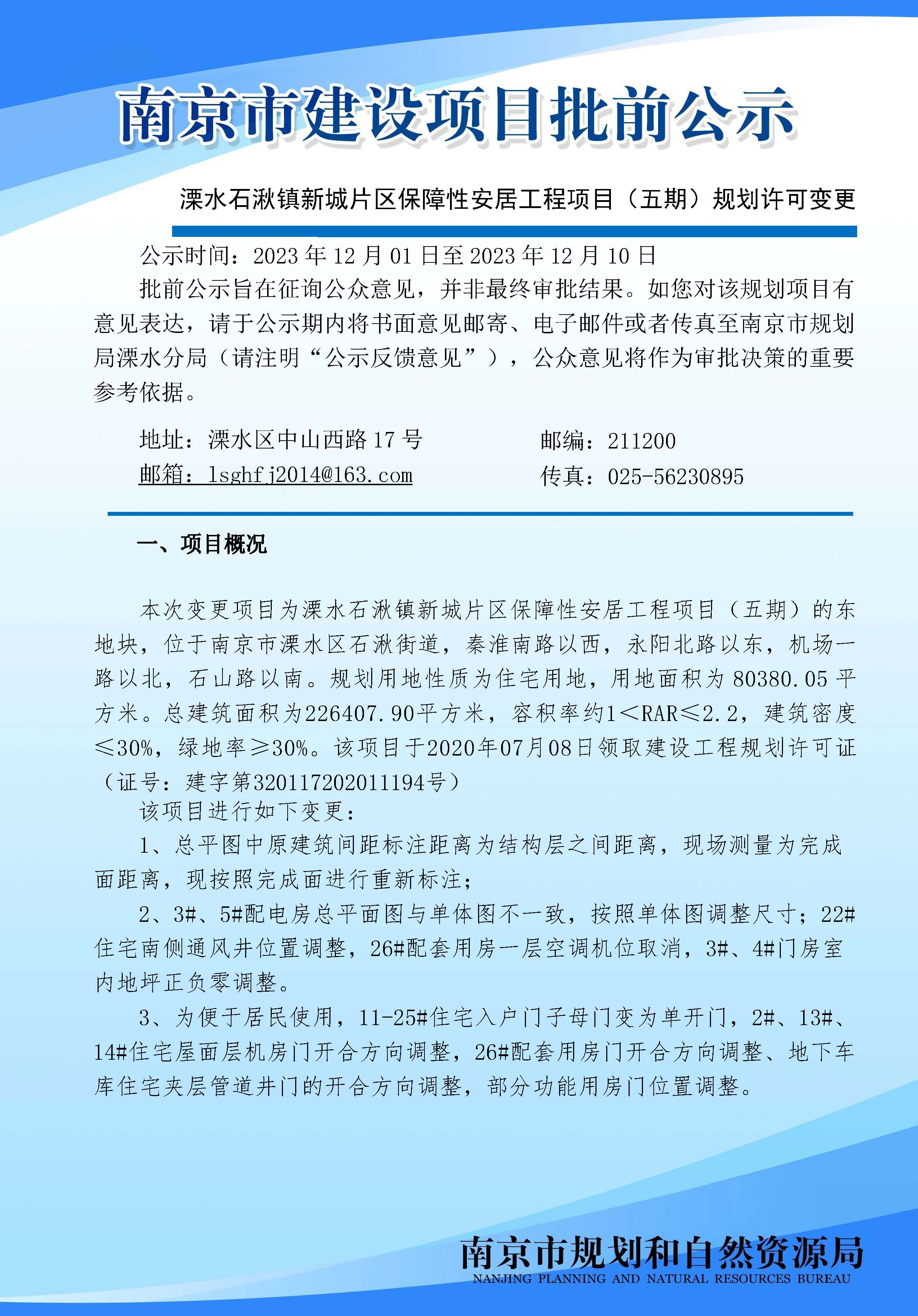 信息名称: | 溧水石湫镇新城片区保障性安居工程项目(五期)规划许可变更批前公示 | ||