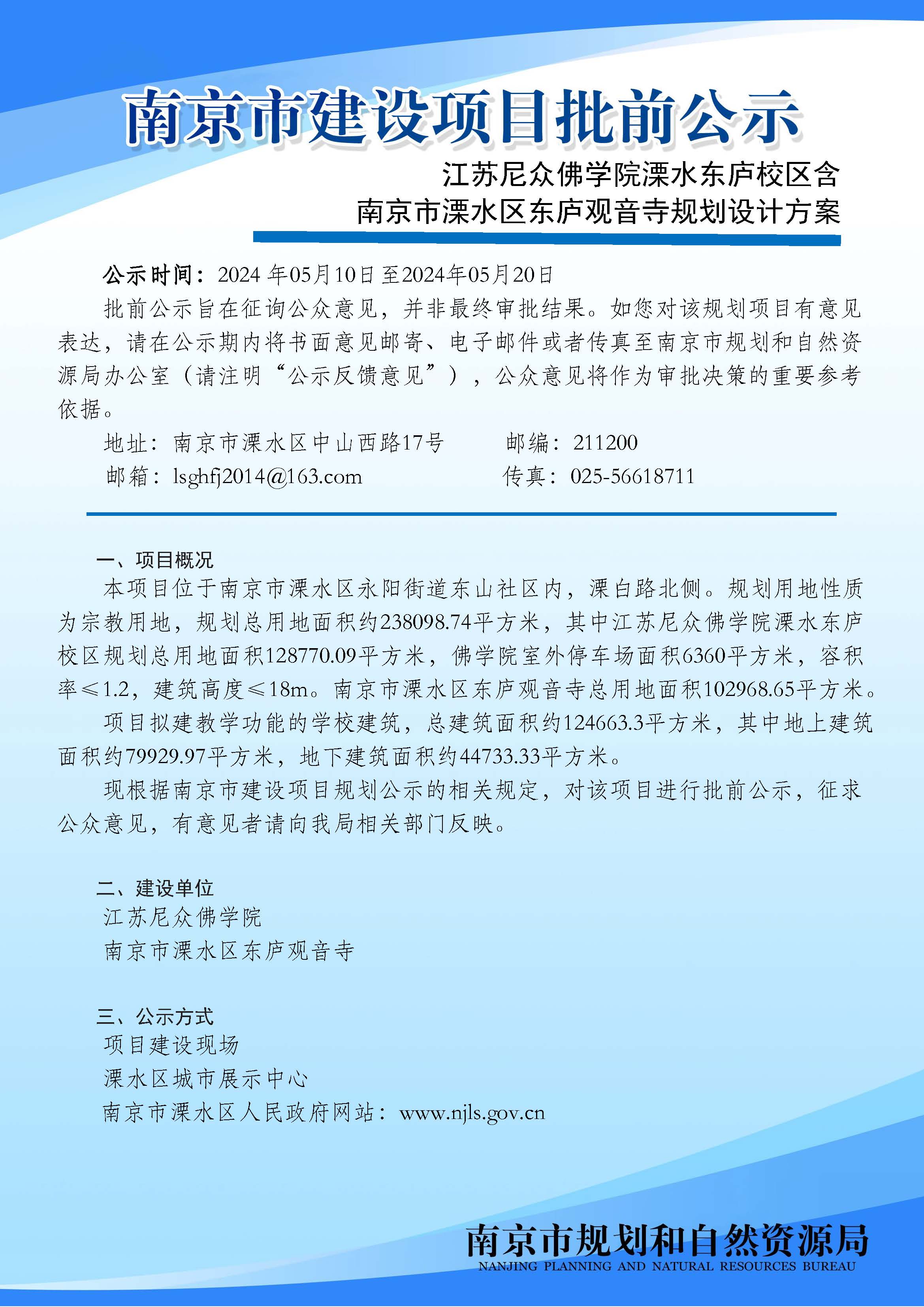 | 信息名称: | 江苏尼众佛学院溧水东庐校区含南京市溧水区东庐观音寺规划设计方案批前公示 | ||