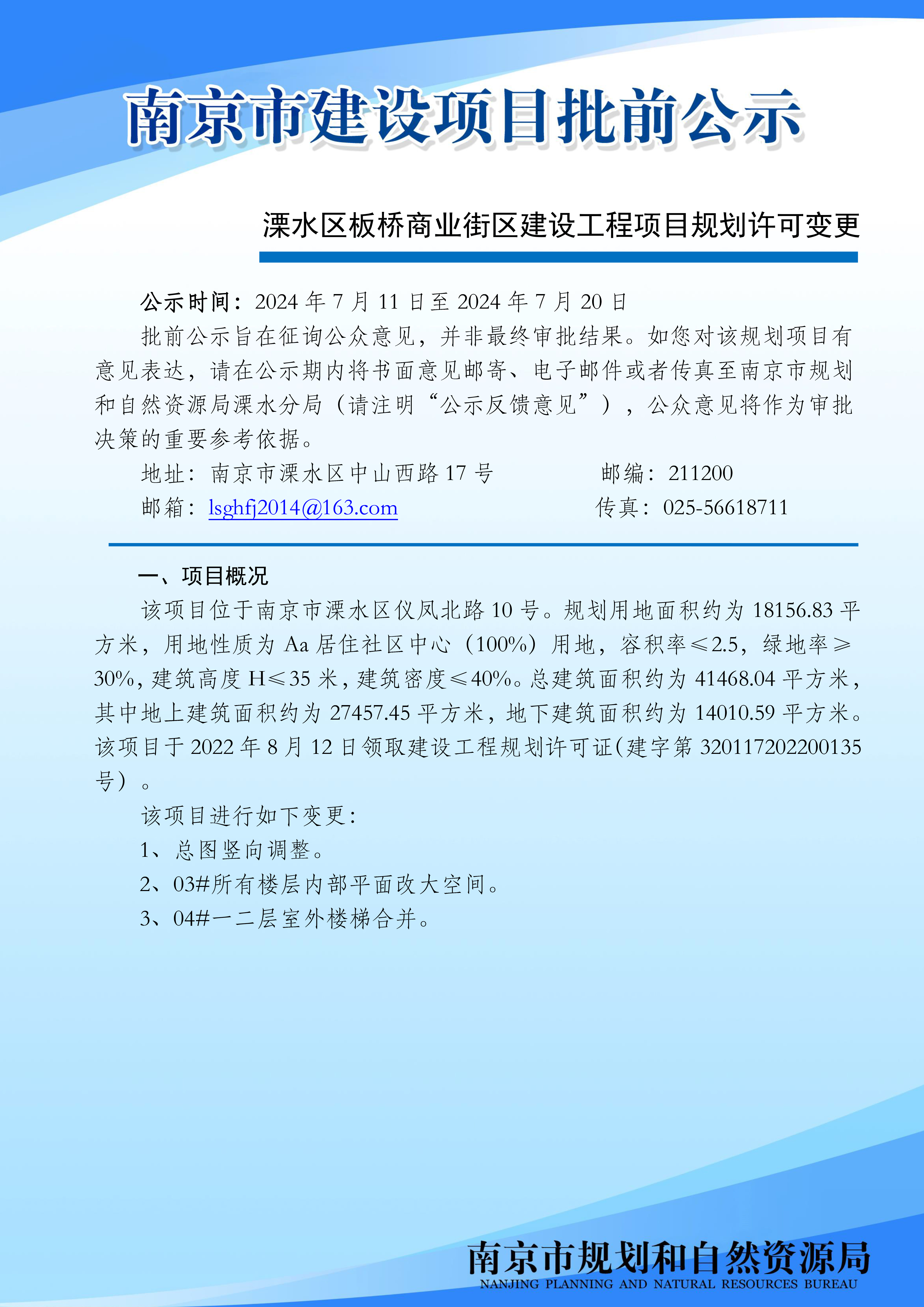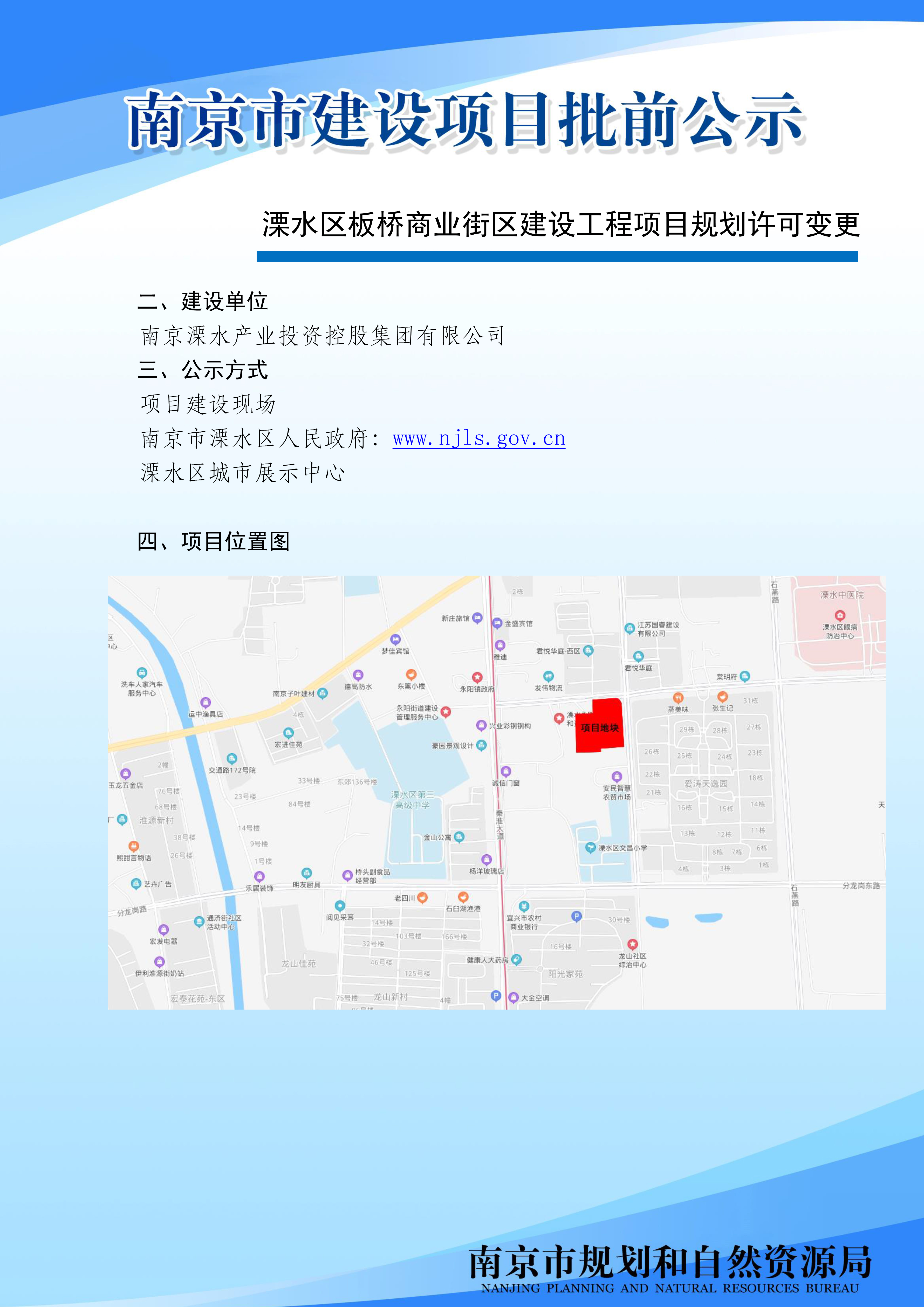 信息名称: | 溧水区板桥商业街区建设工程项目规划许可变更批前公示 | ||