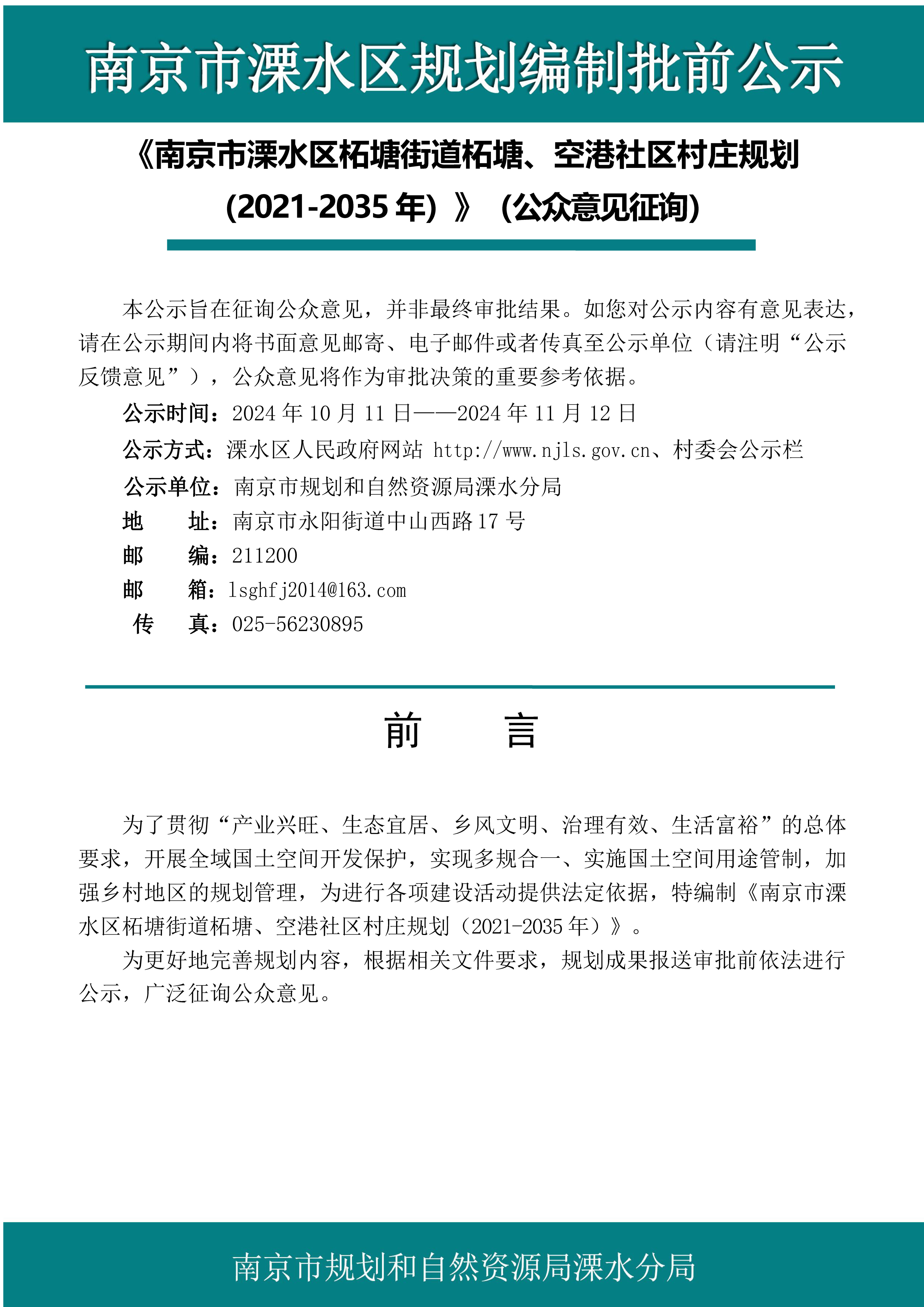 | 信息名称: | 南京市溧水区柘塘街道柘塘、空港社区村庄规划(2021-2035年)批前公示 | ||