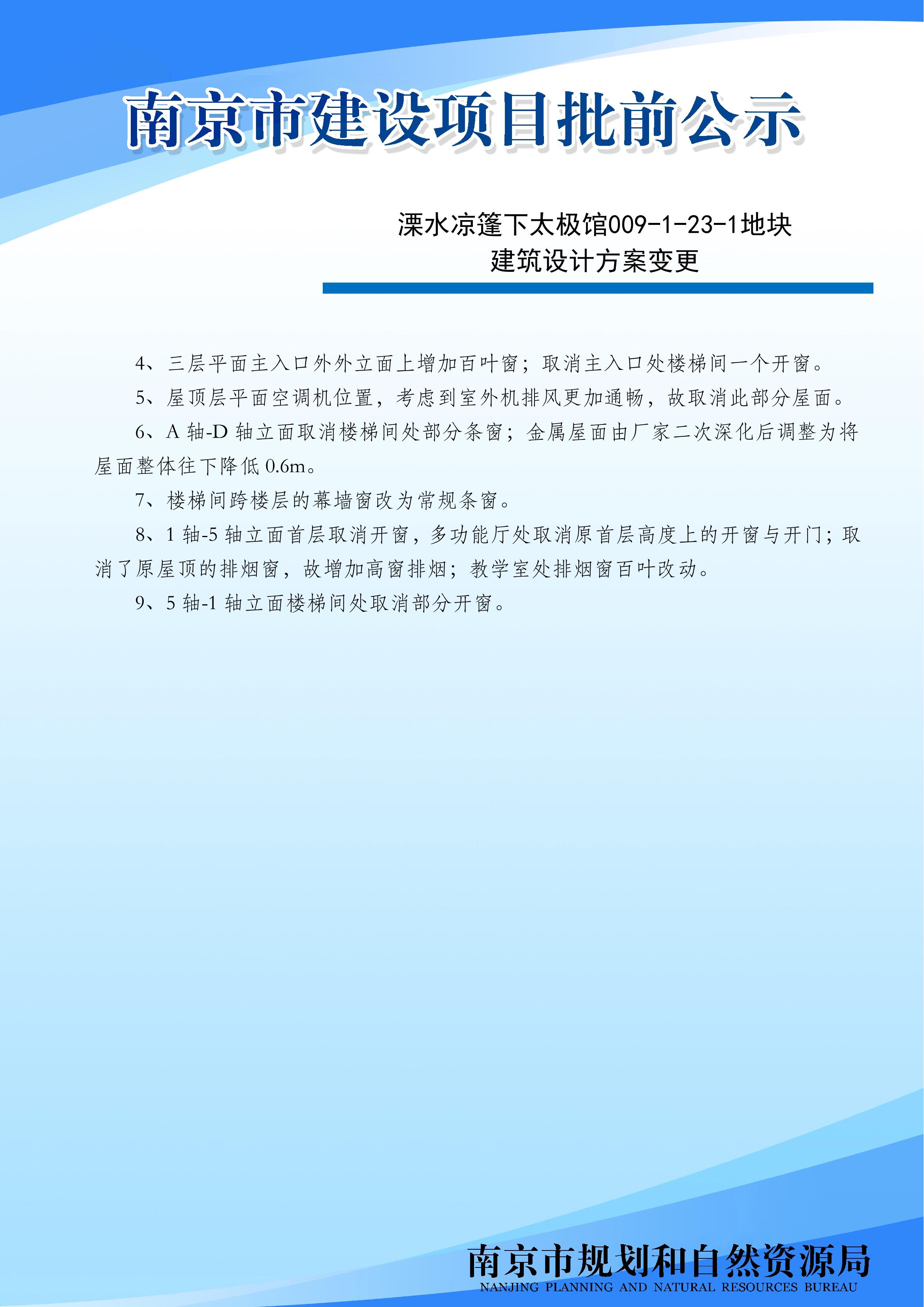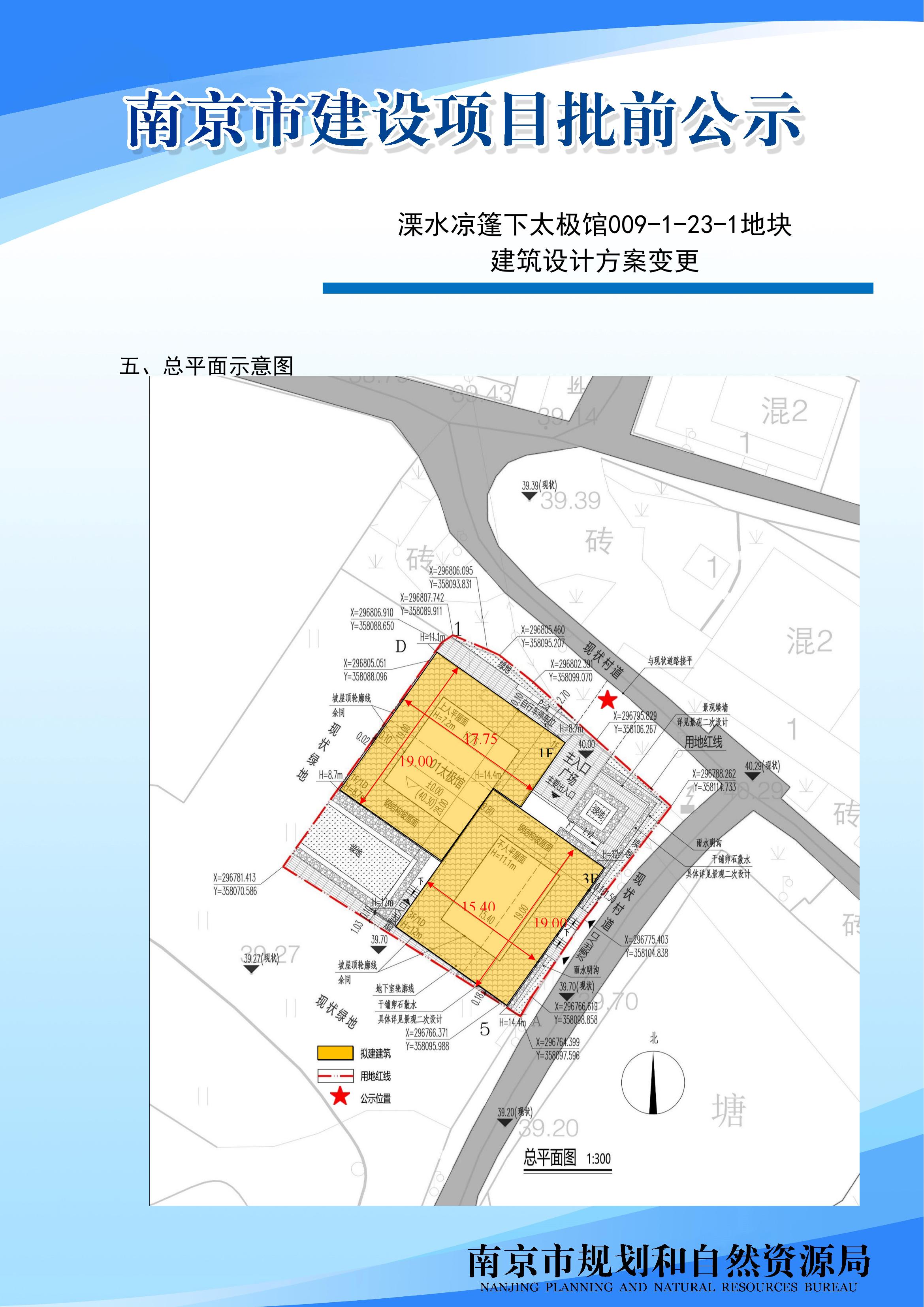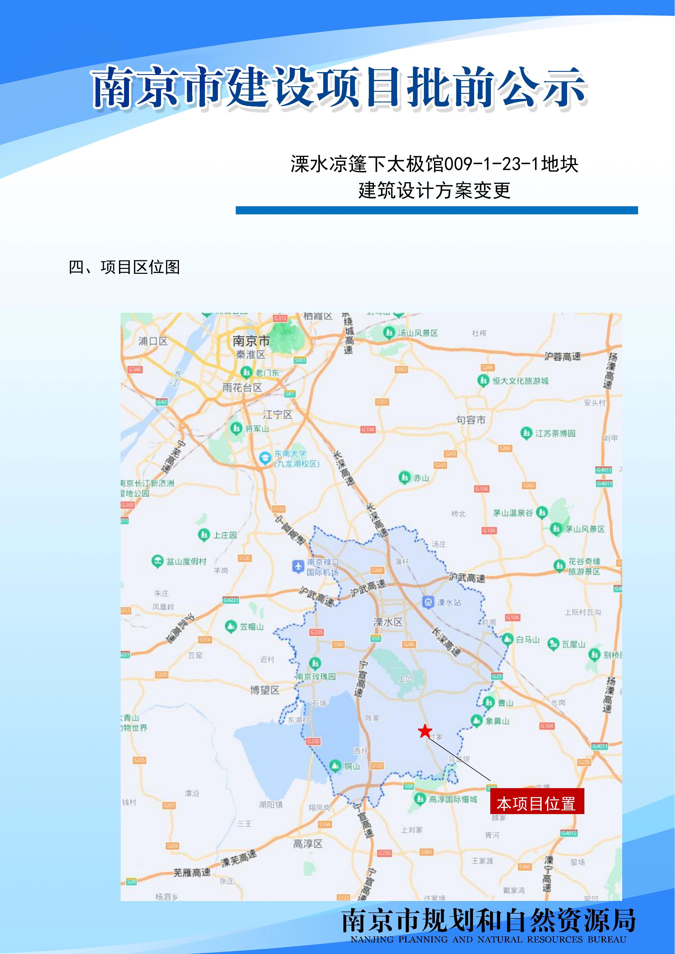 信息名称: | 溧水凉篷下太极馆009-1-23-1地块建筑设计方案变更批前公示 | ||