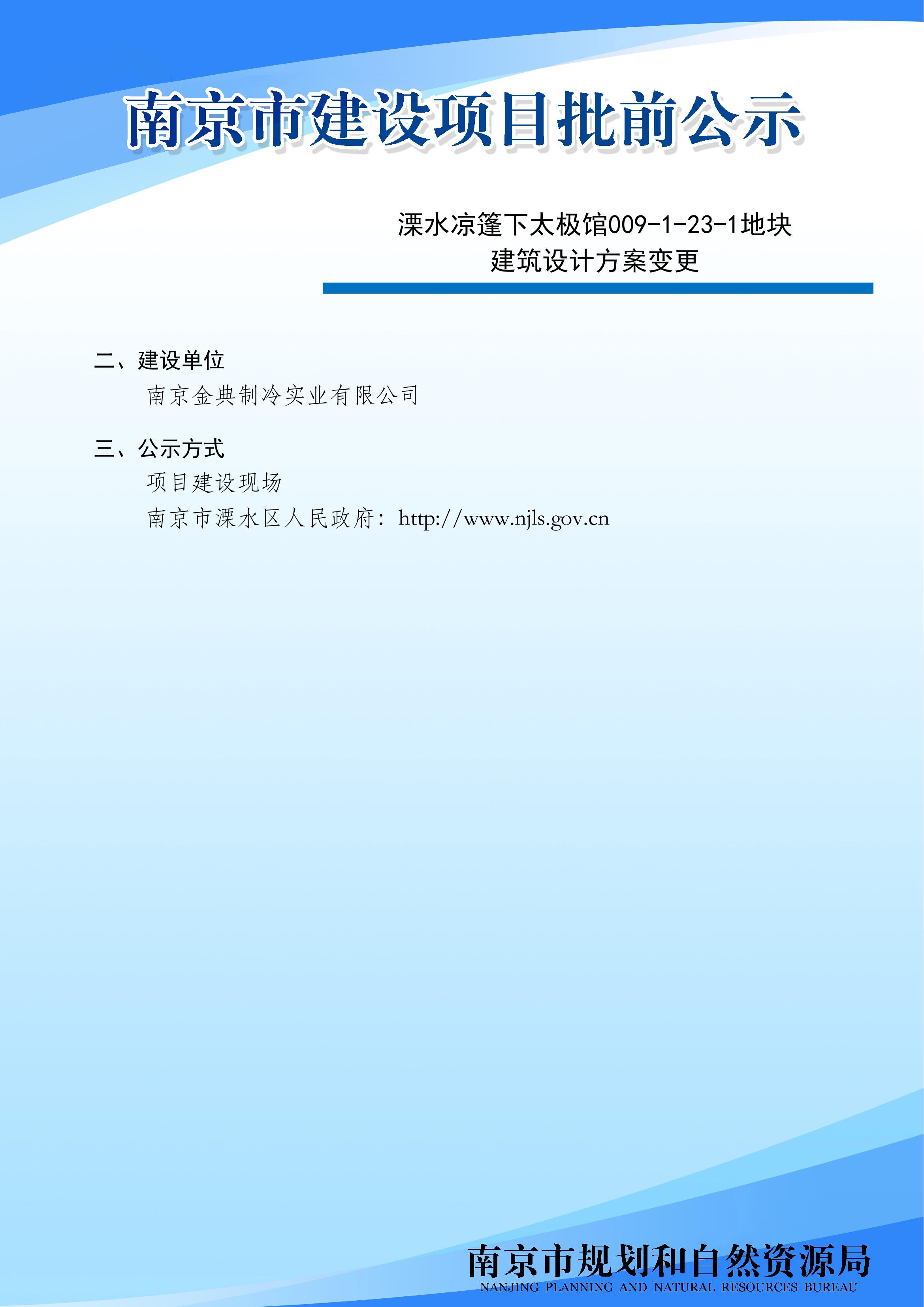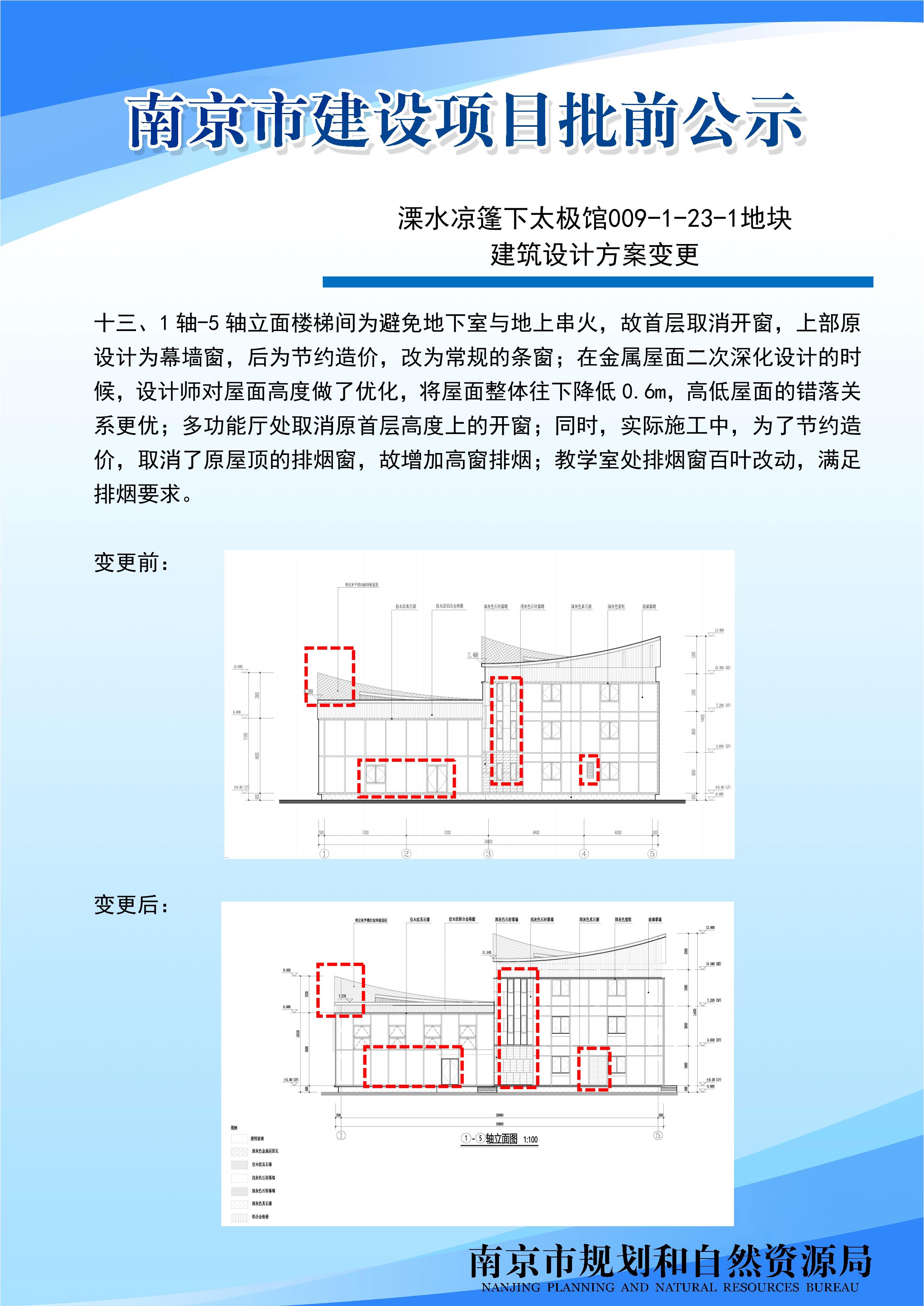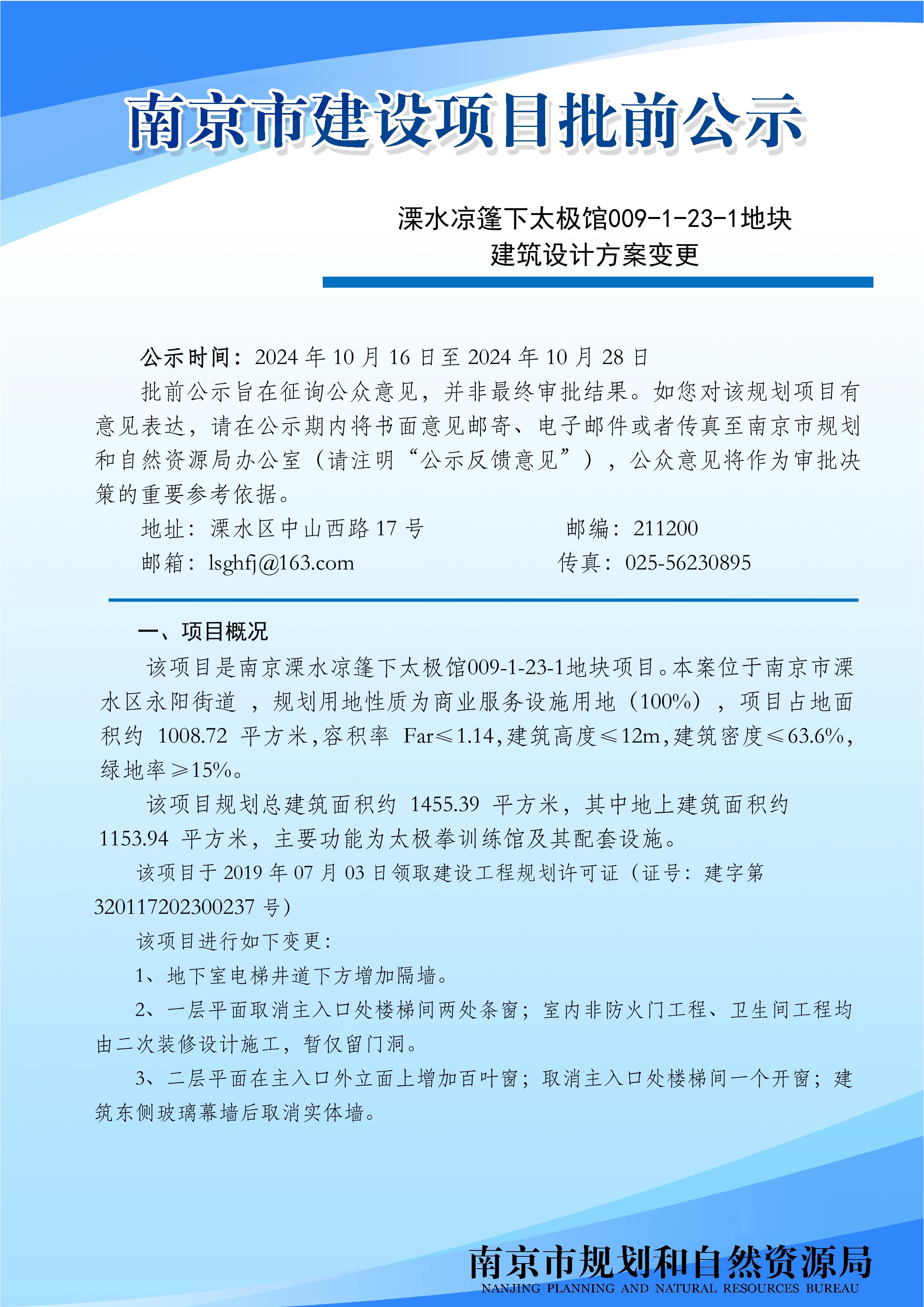 信息名称: | 溧水凉篷下太极馆009-1-23-1地块建筑设计方案变更批前公示 | ||