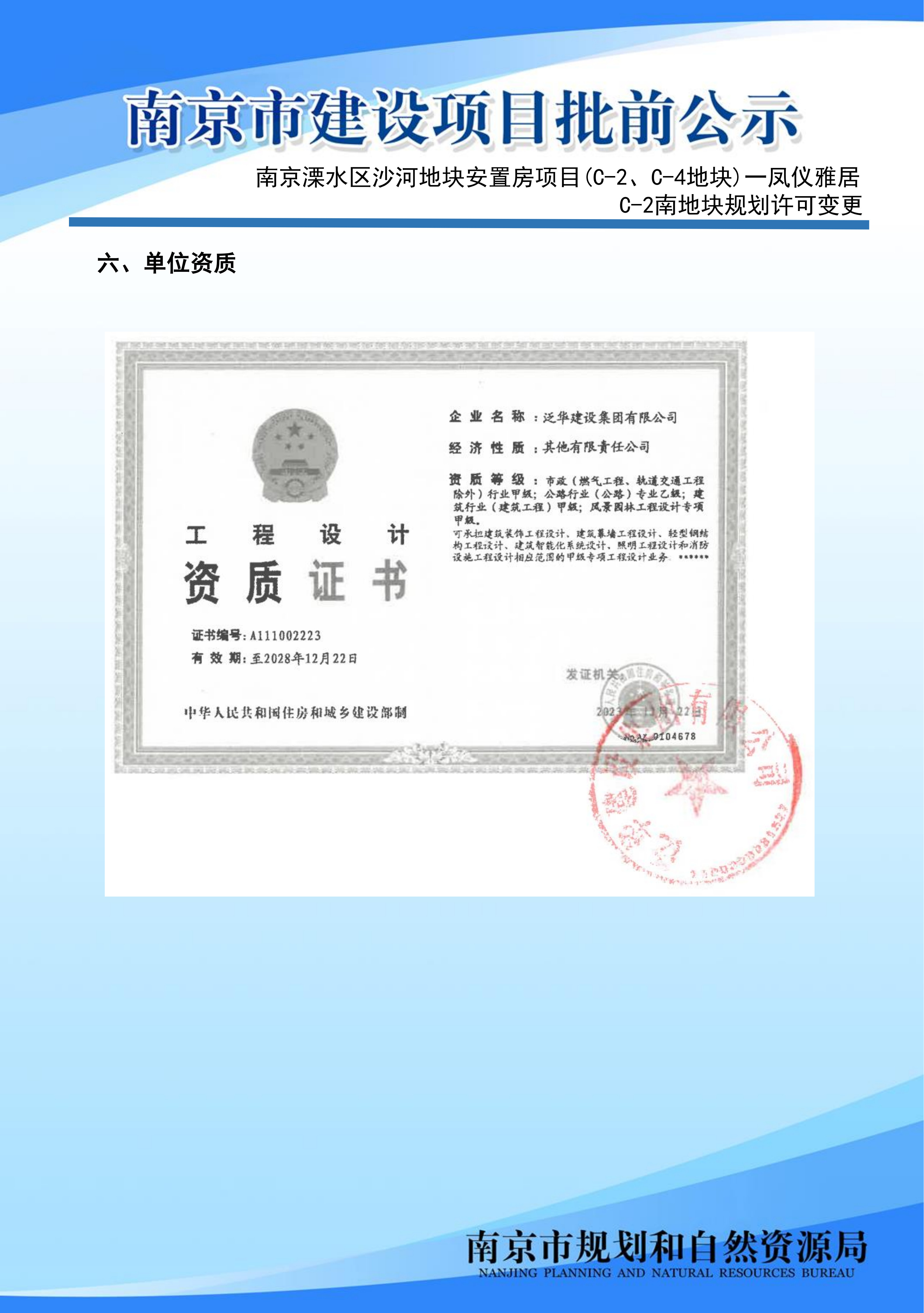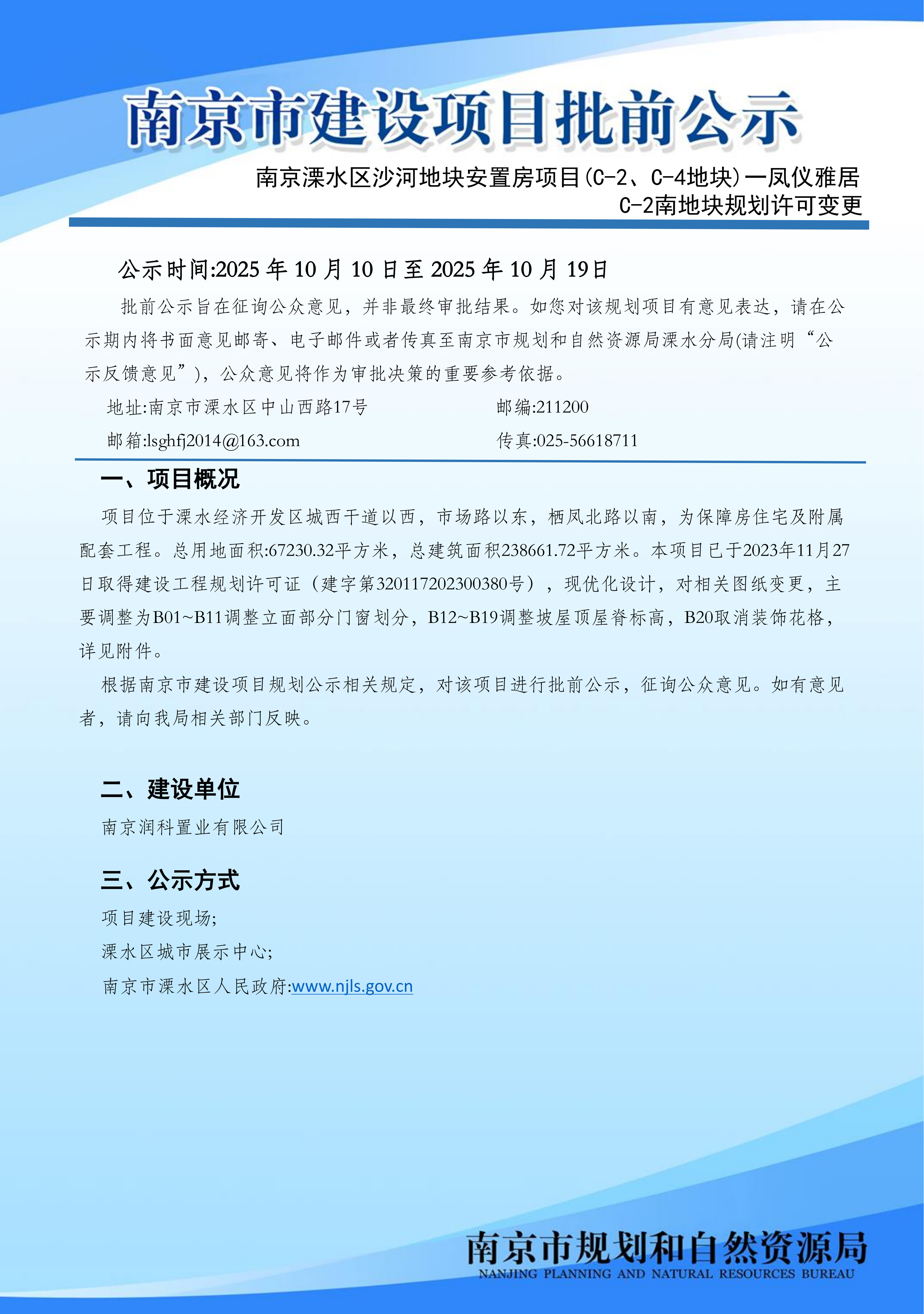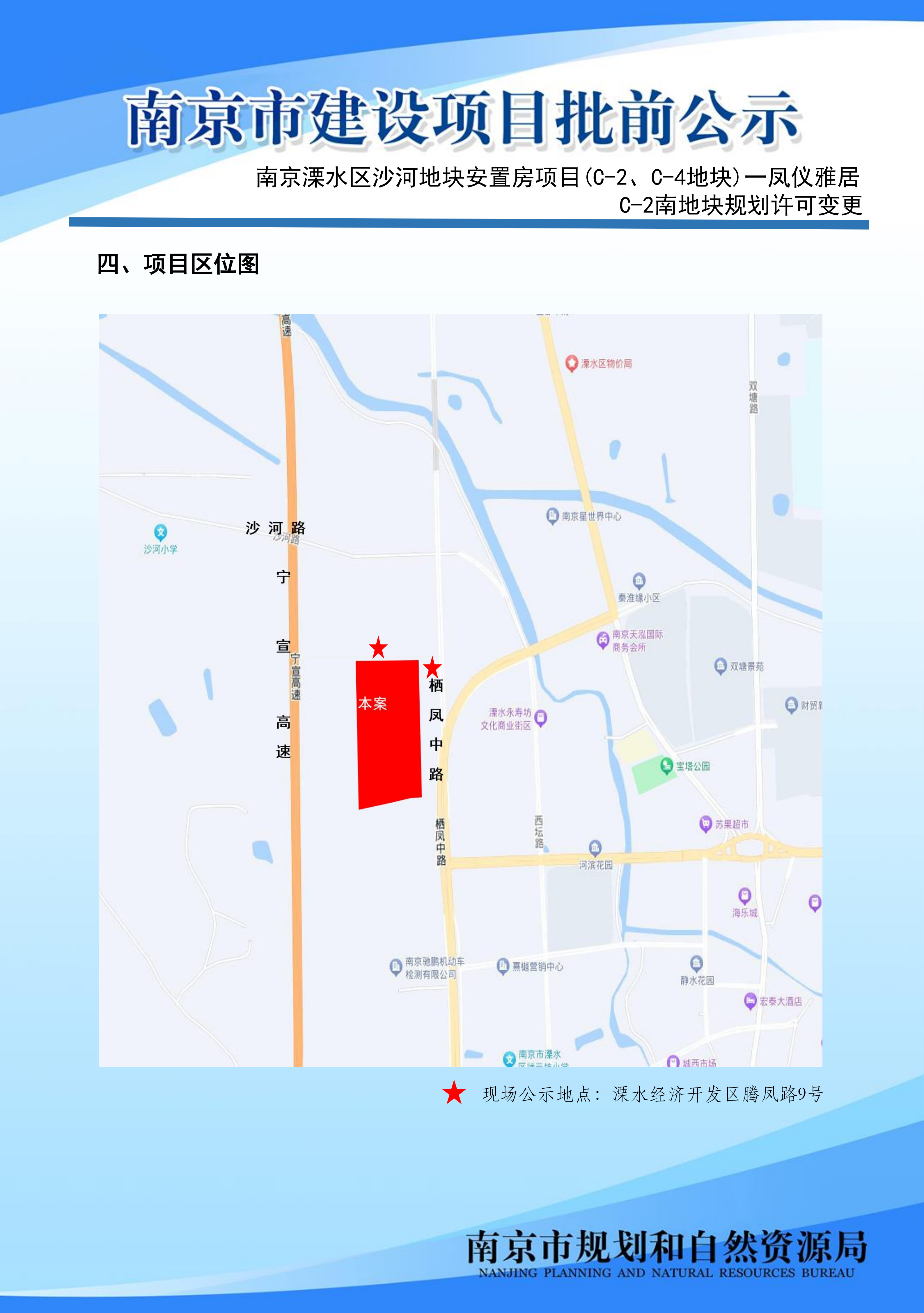 | 信息名称: | 南京溧水区沙河地块安置房项目(C-2、C-4地块)一凤仪雅居C-2南地块规划许可变更批前公示 | ||