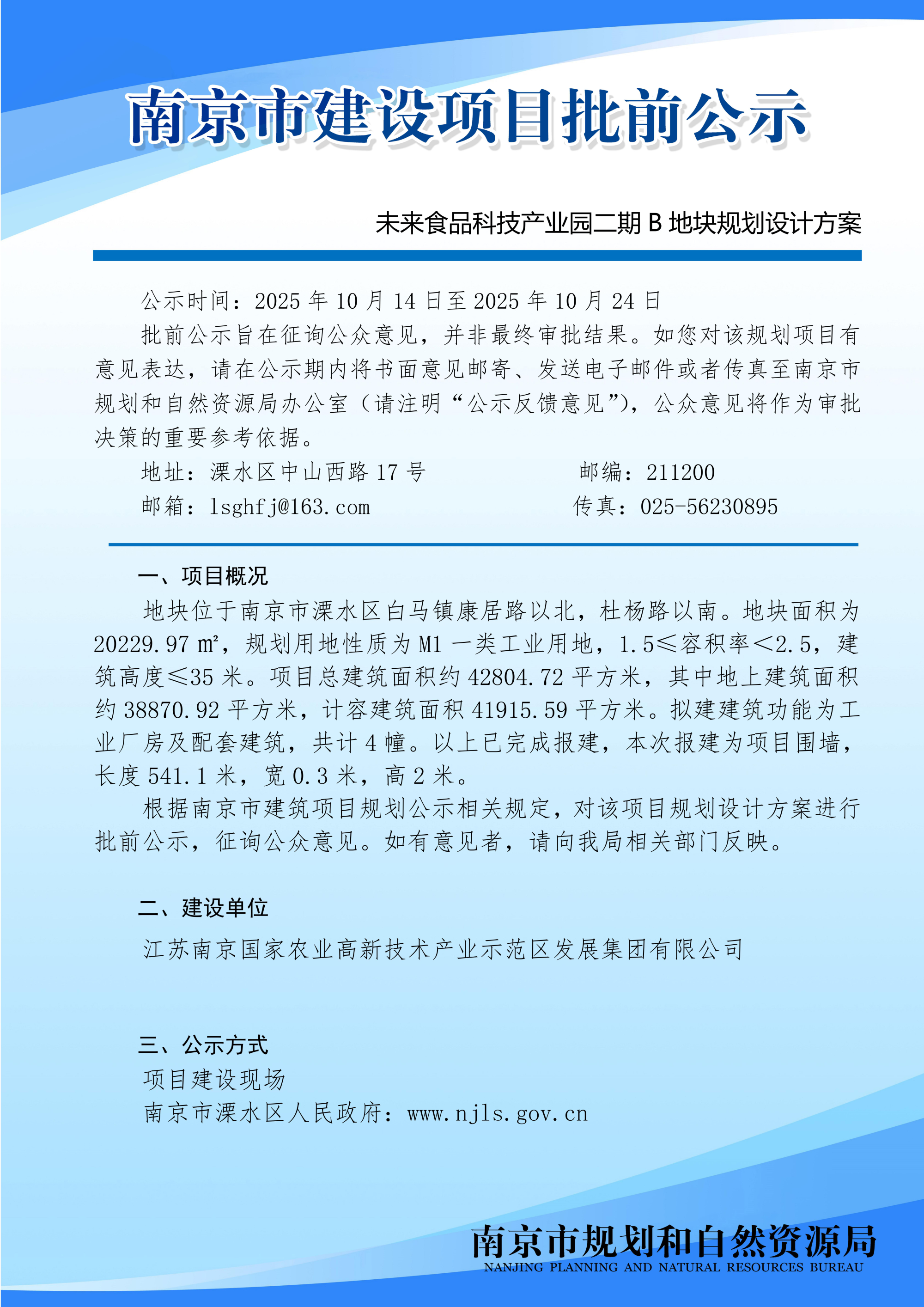 未来食品科技产业园二期B地块规划设计方案批前公示
