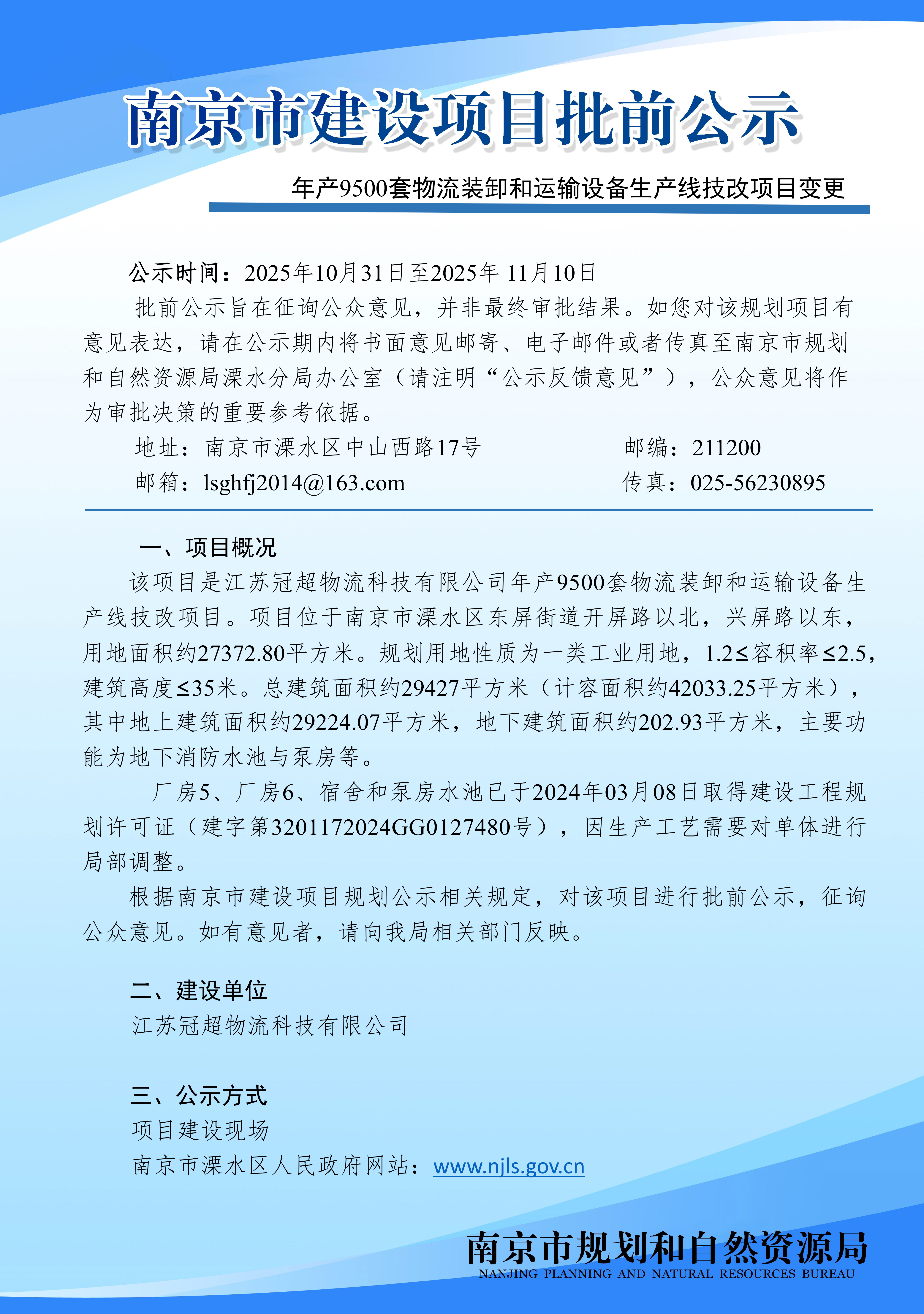 年产9500套物流装卸和运输设备生产线技改项目变更批前公示