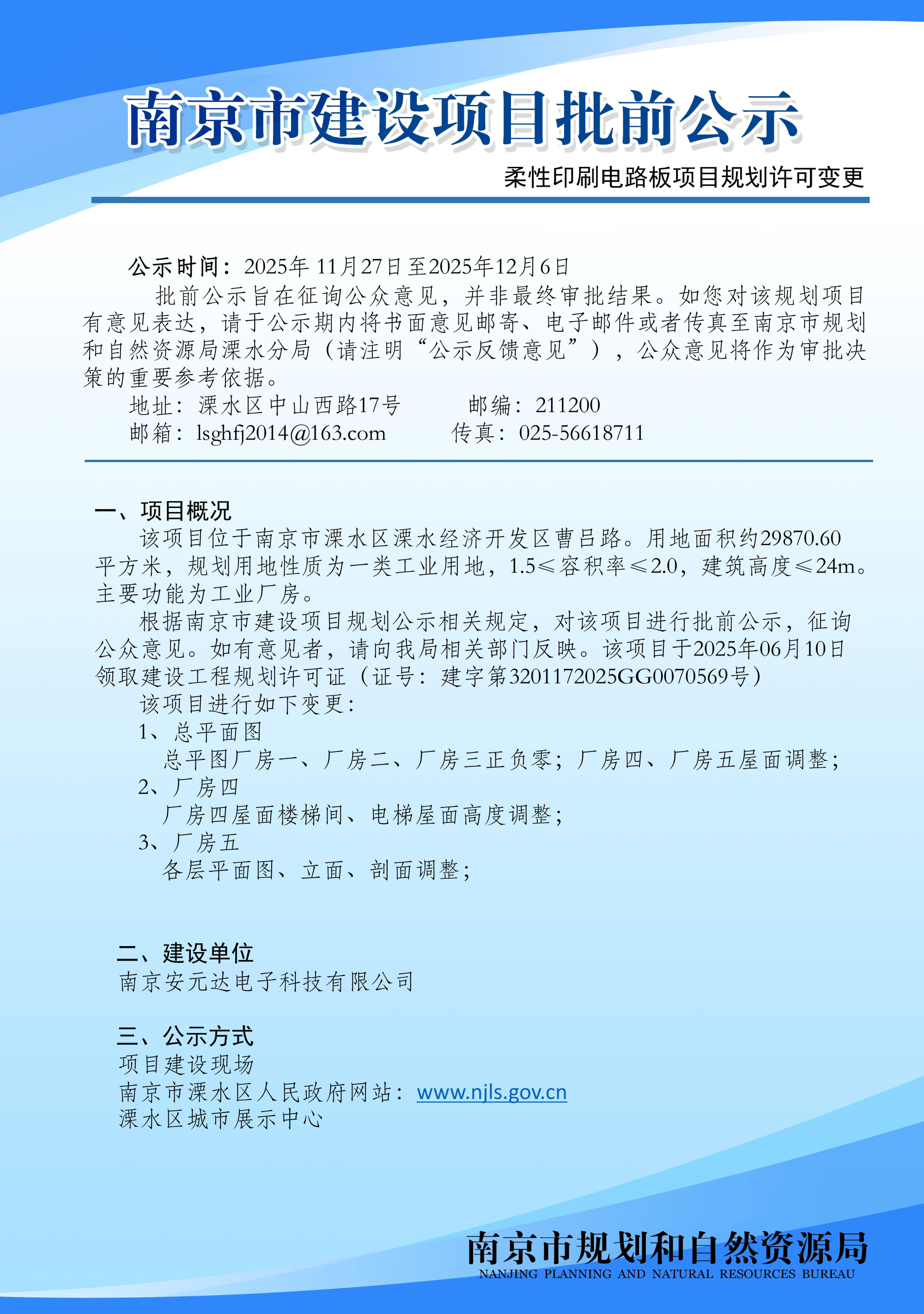 | 信息名称: | 柔性印刷电路板项目规划许可变更批前公示 | ||