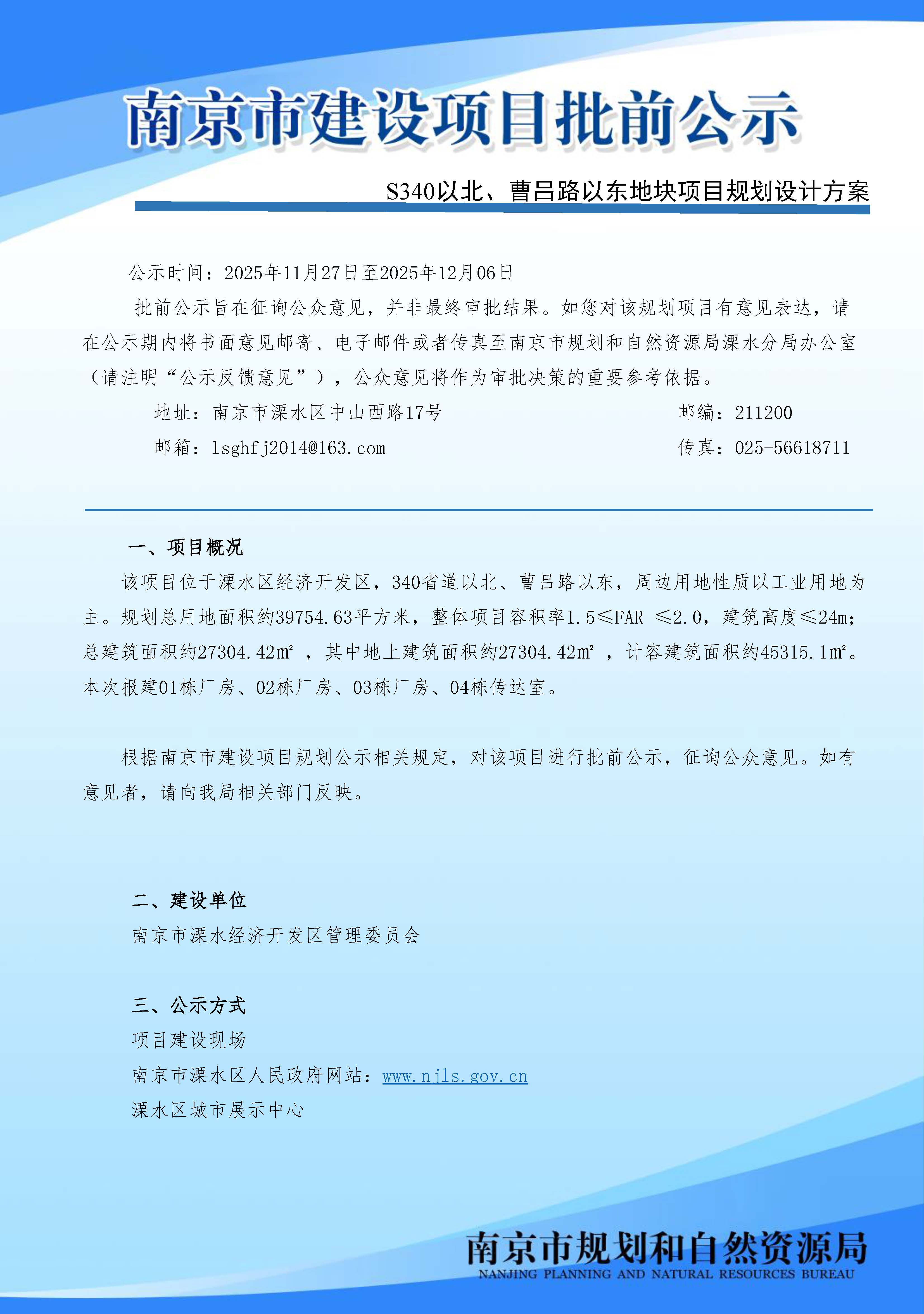 S340以北、曹吕路以东地块项目规划设计方案批前公示