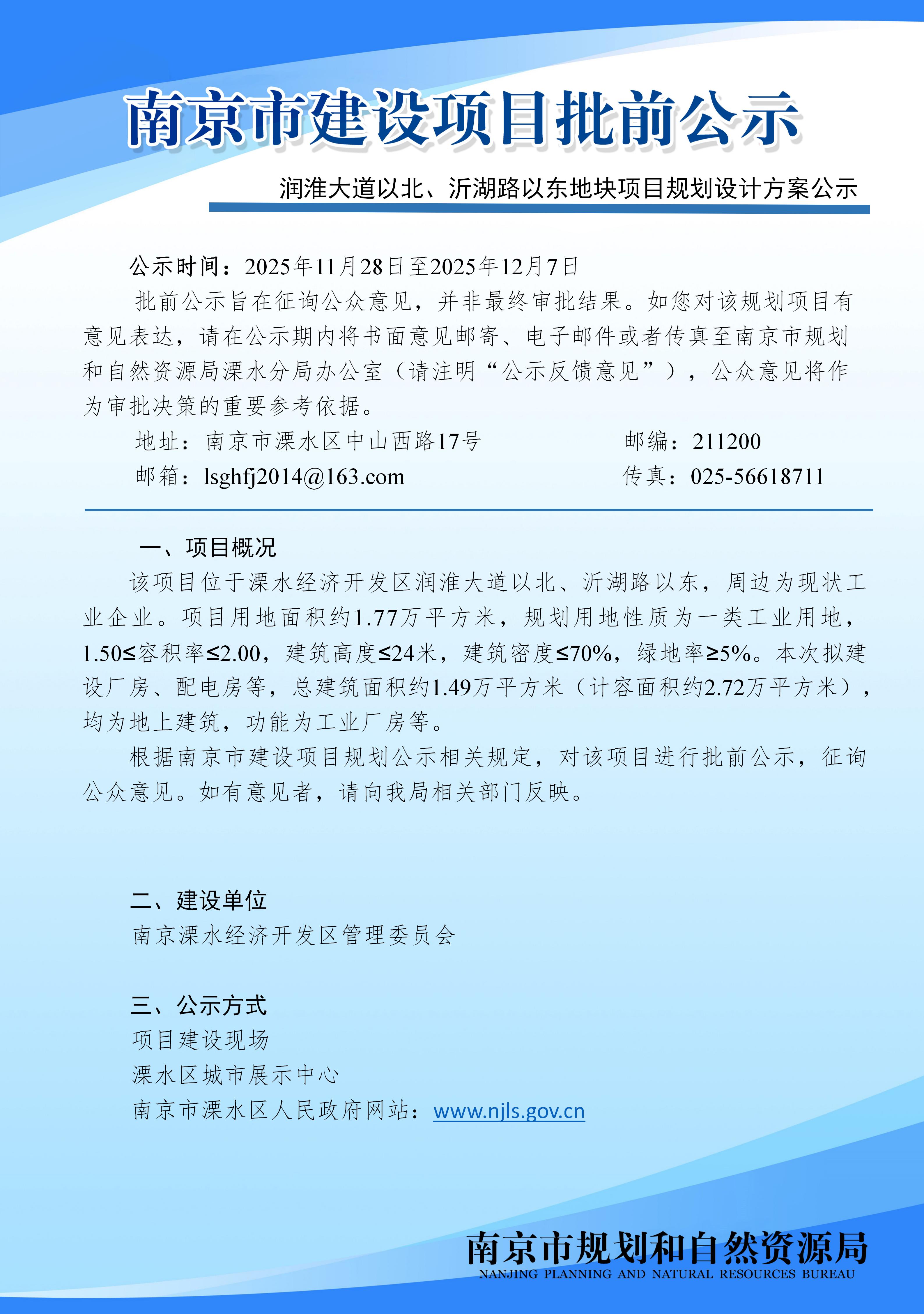 润淮大道以北、沂湖路以东地块项目规划设计方案批前公示