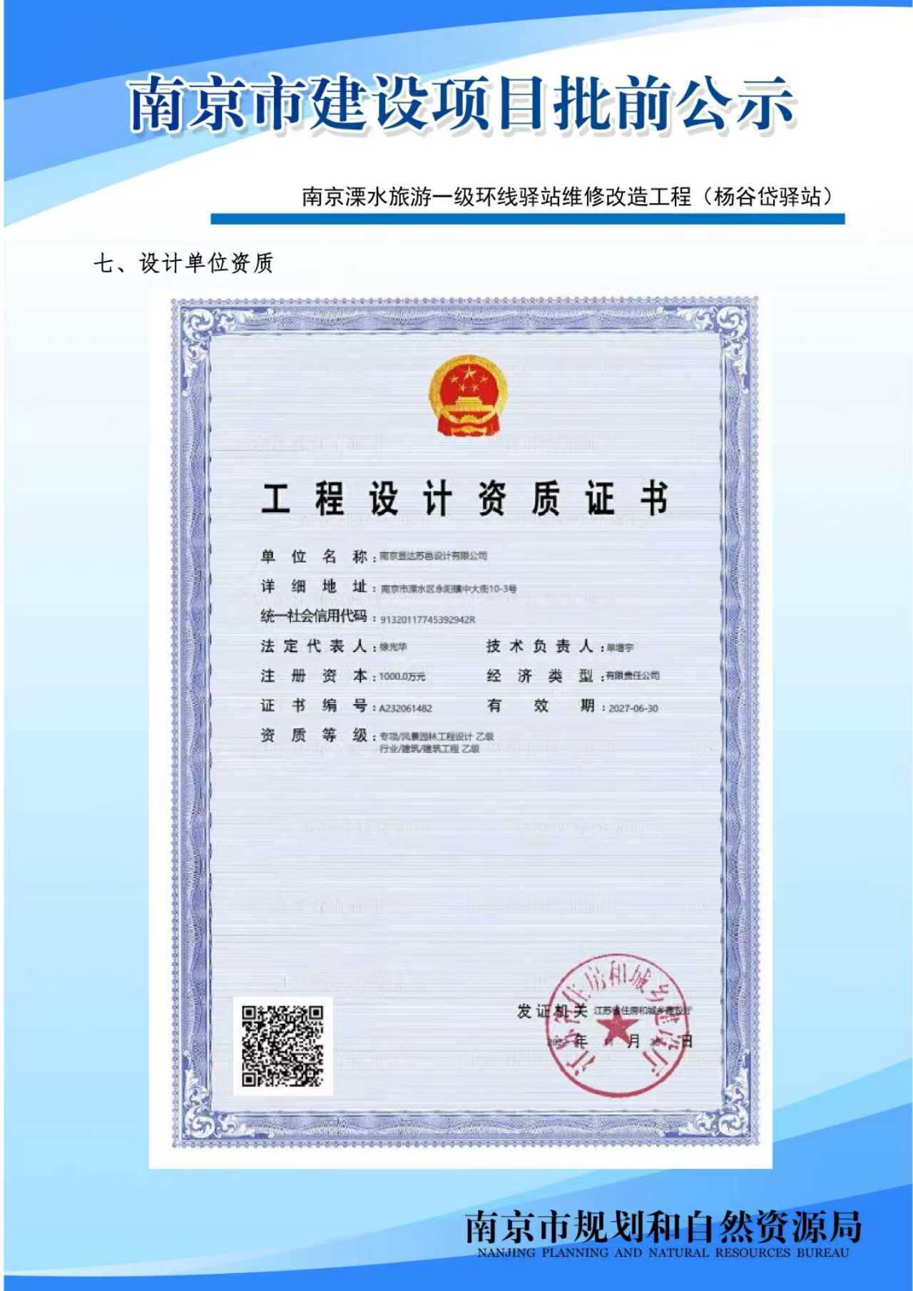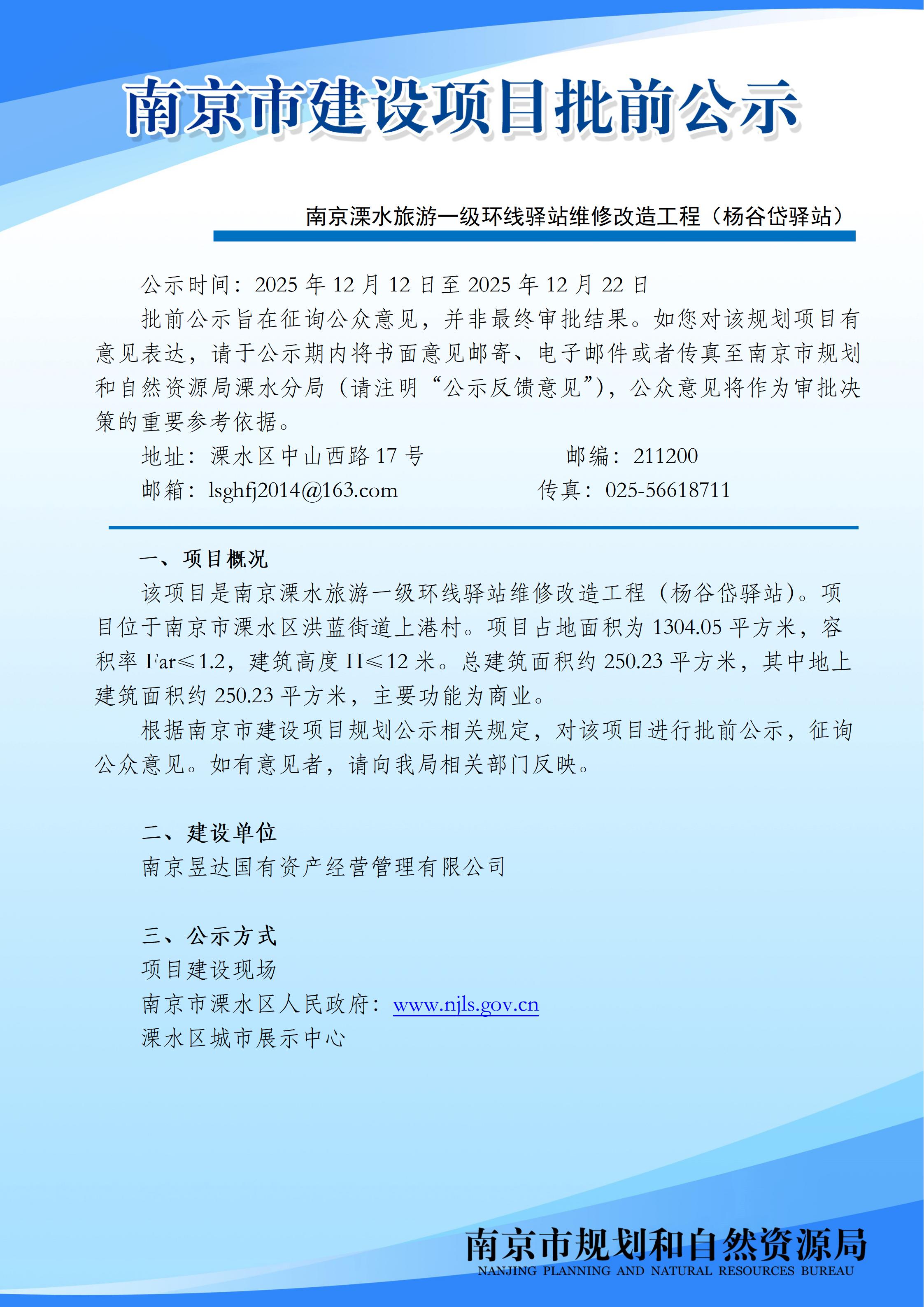 南京溧水旅游一级环线驿站维修改造工程(杨谷岱驿站)批前公示