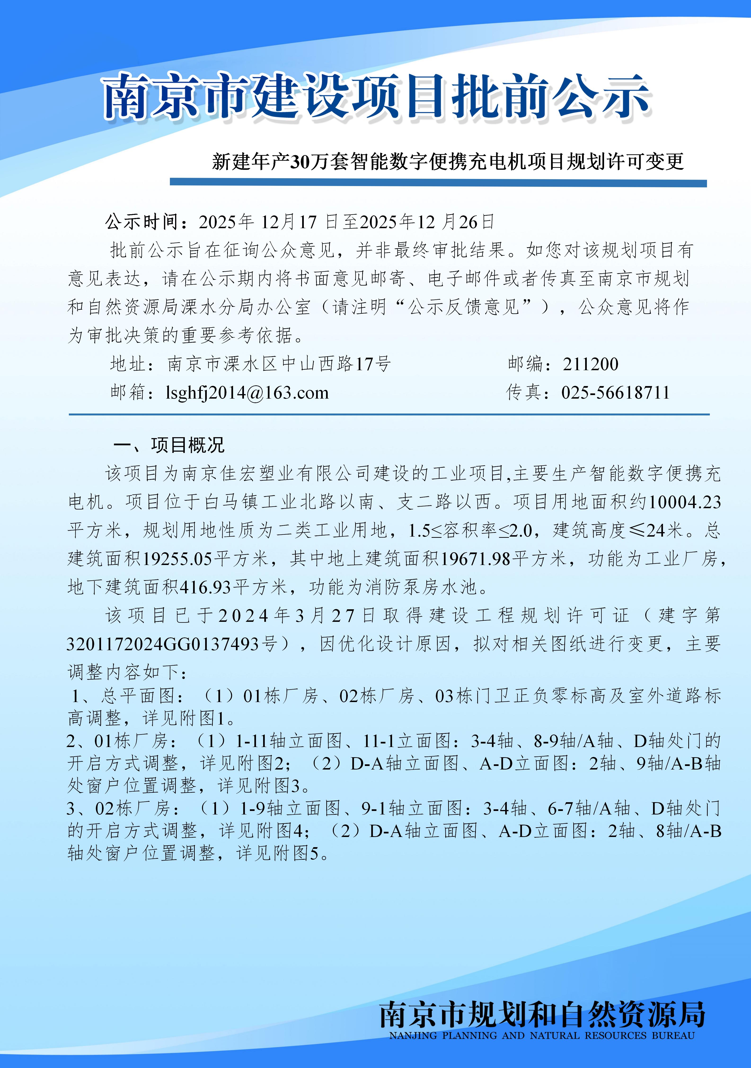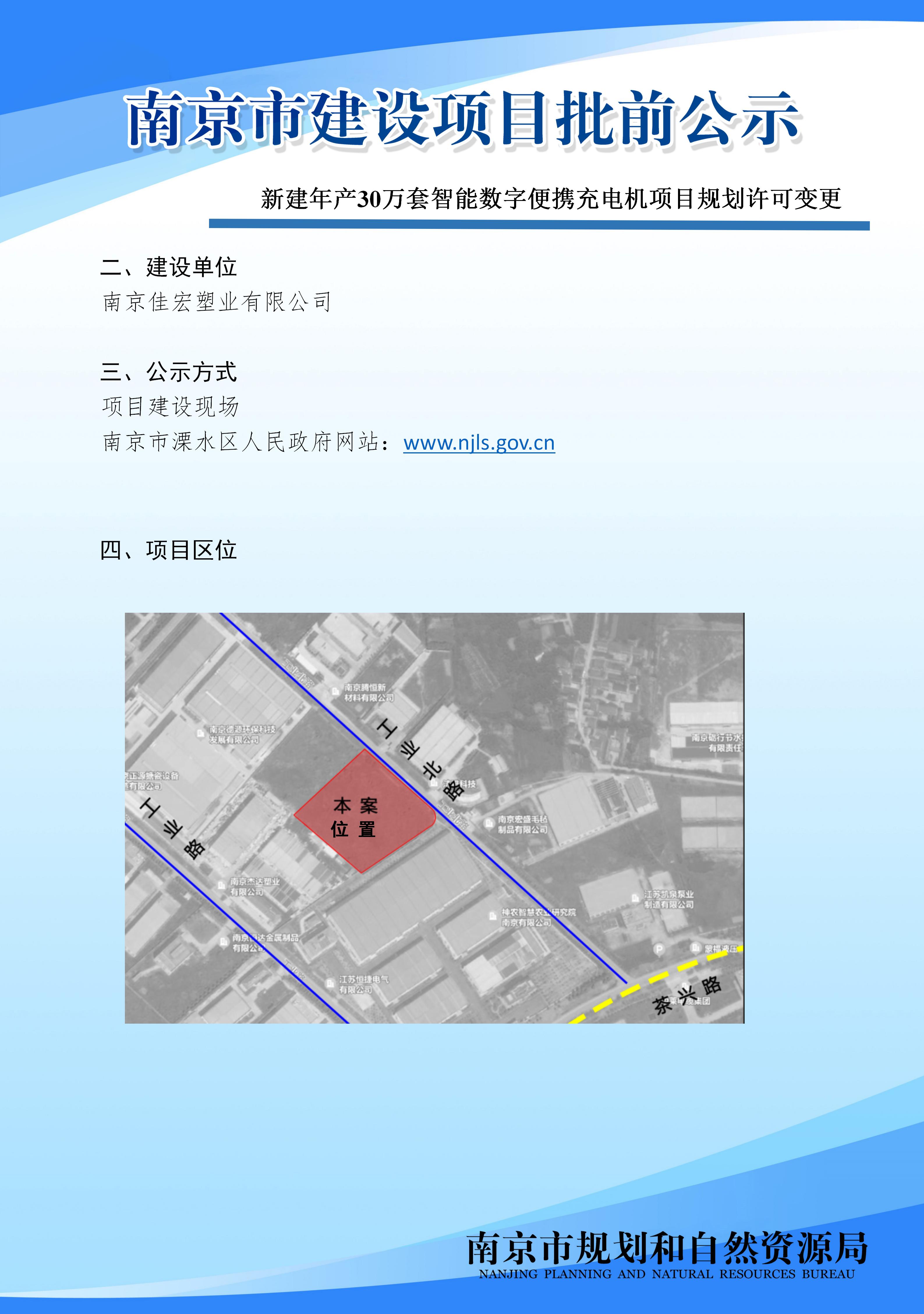 | 信息名称: | 新建年产30万套智能数字便携充电机项目规划许可变更批前公示 | ||