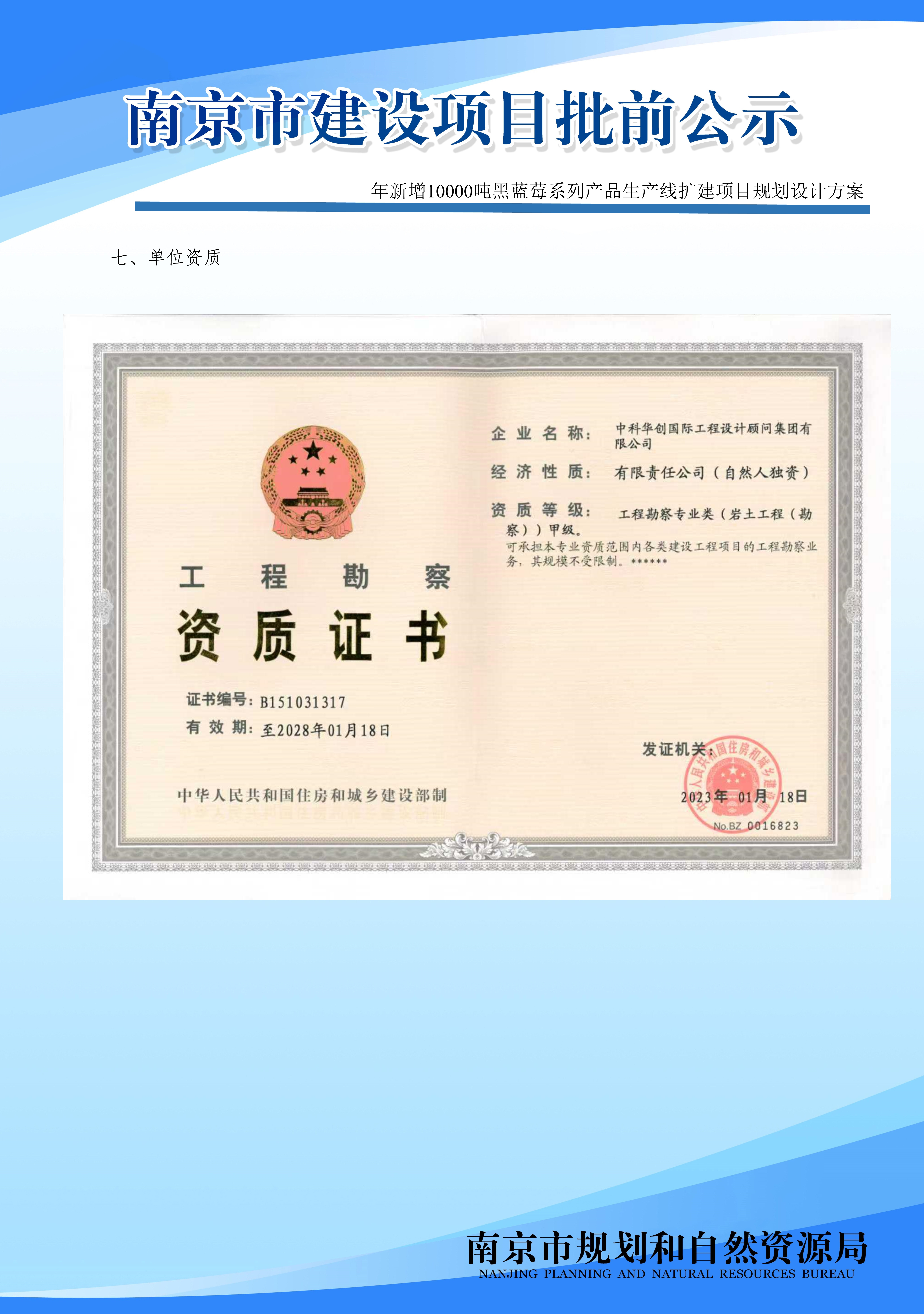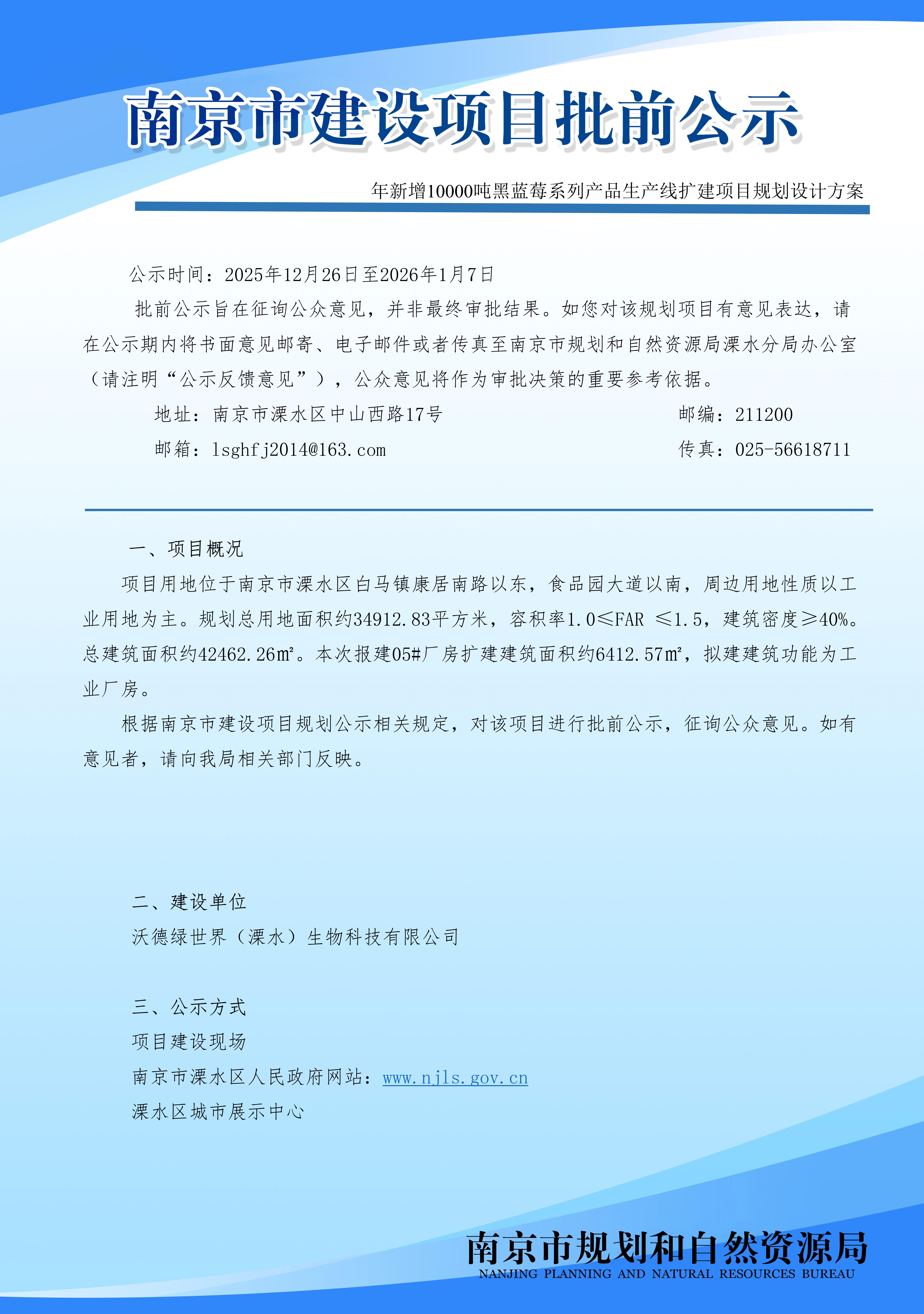 年新增10000吨黑蓝莓系列产品生产线扩建项目规划设计方案批前公示