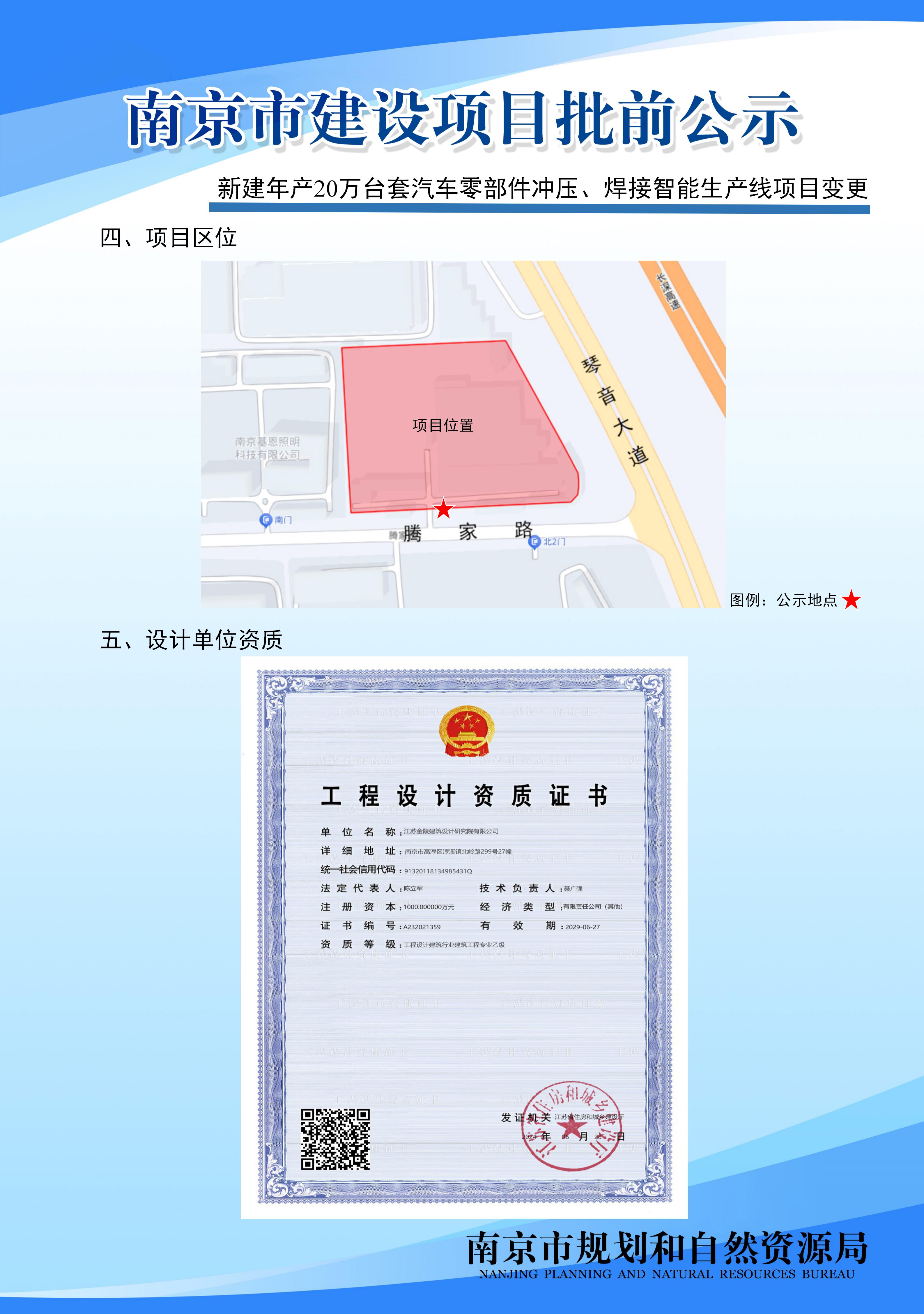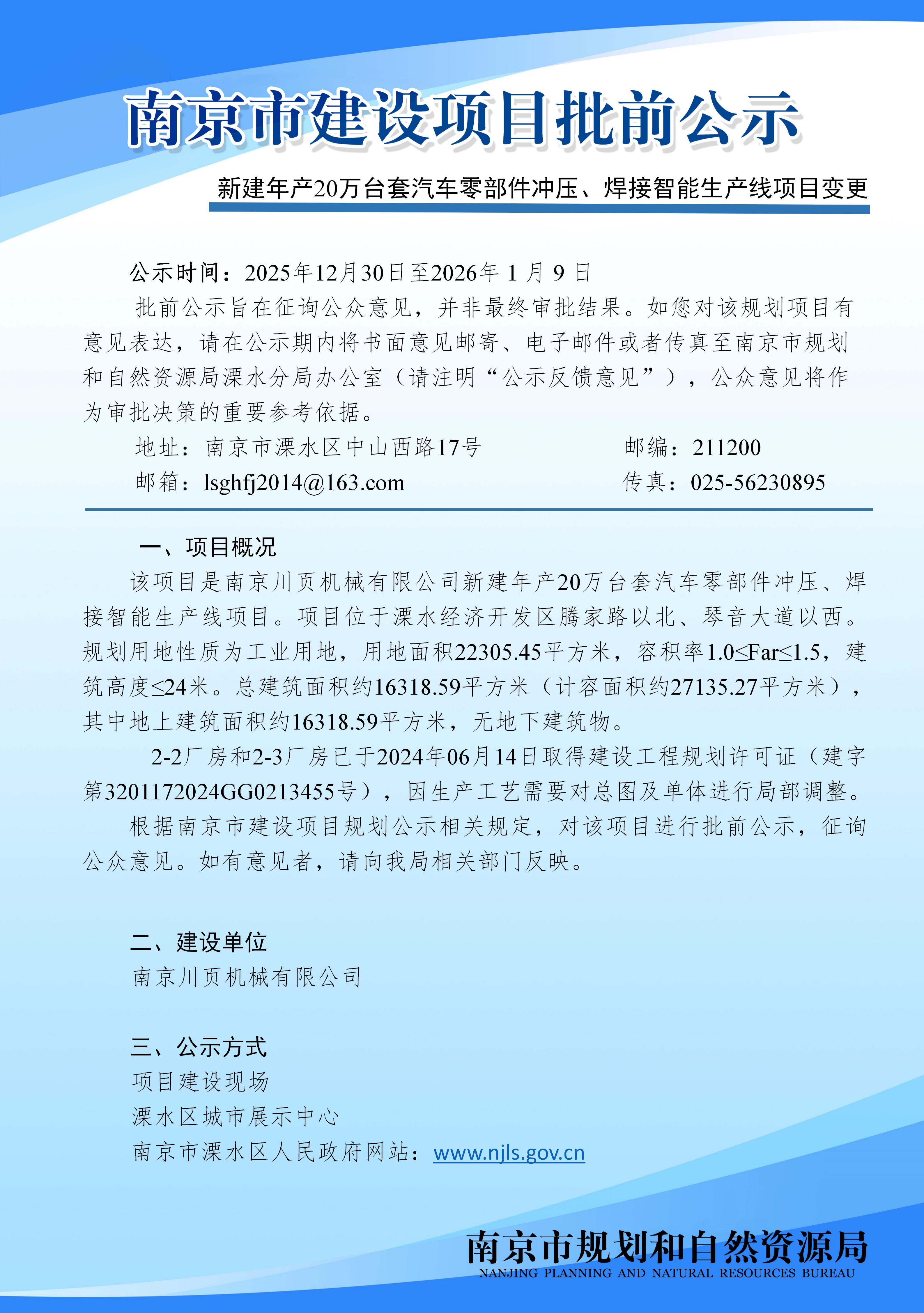 新建年产20万台套汽车零部件冲压、焊接智能生产线项目变更批前公示