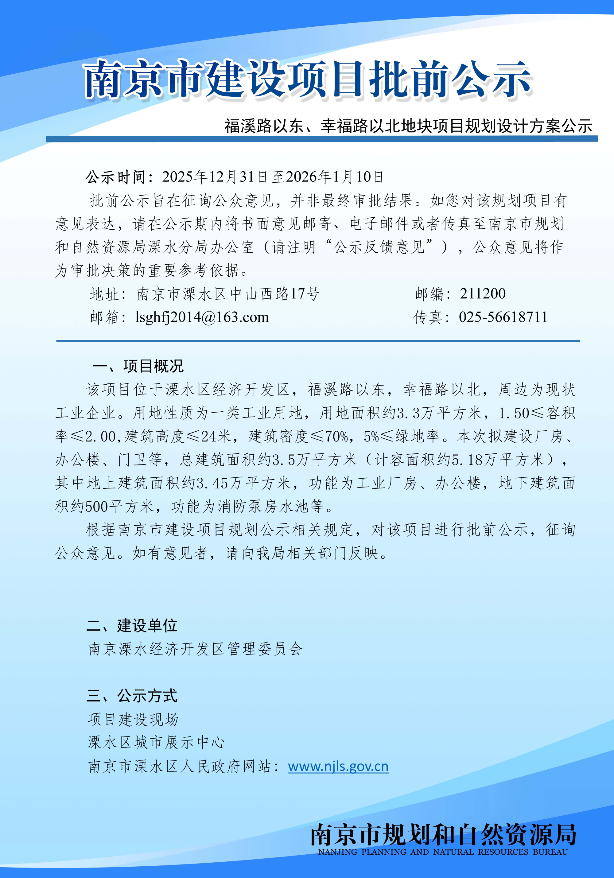 福溪路以东、幸福路以北地块项目规划设计方案批前公示