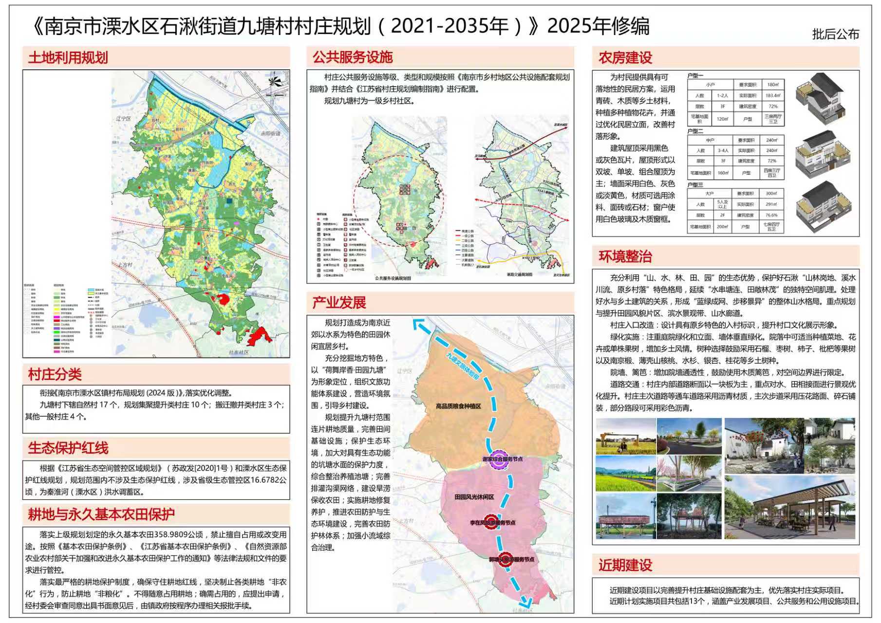 《南京市溧水区石湫街道九塘村村庄规划(2021-2035年)》2025年修编批后公布