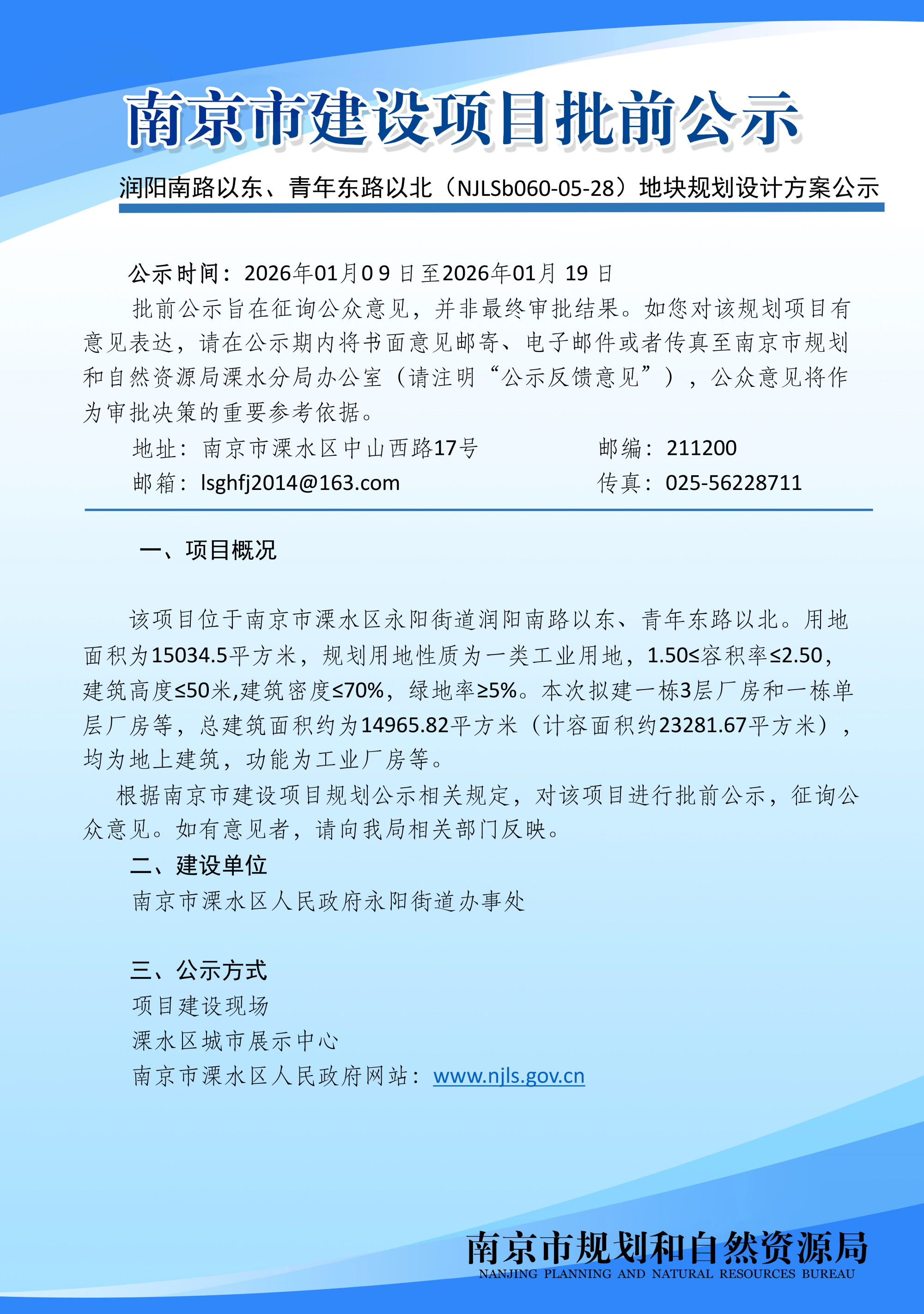 | 发布机构: | 南京市规划和自然资源局溧水分局 | 生成日期: | 2026-01-09 |