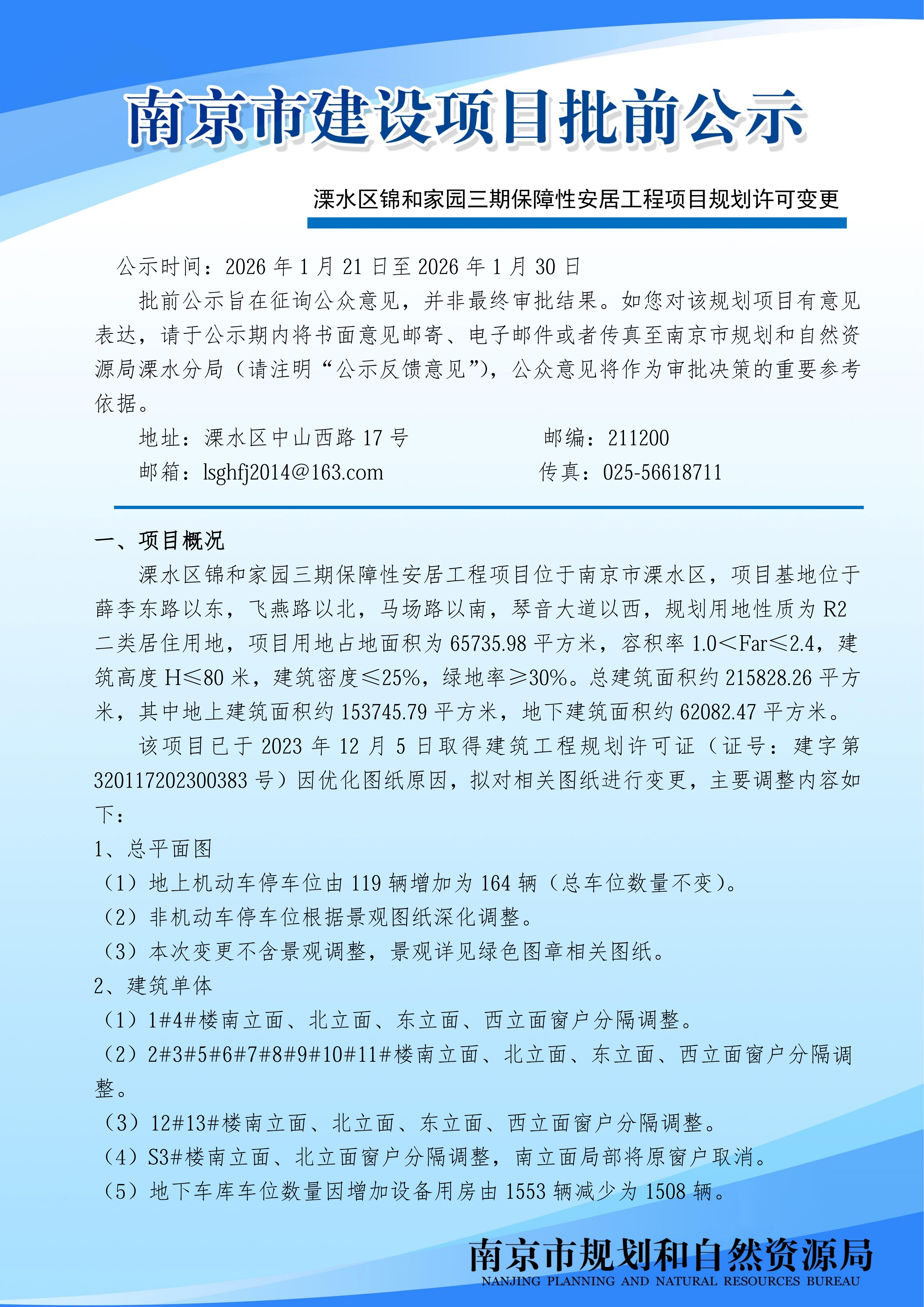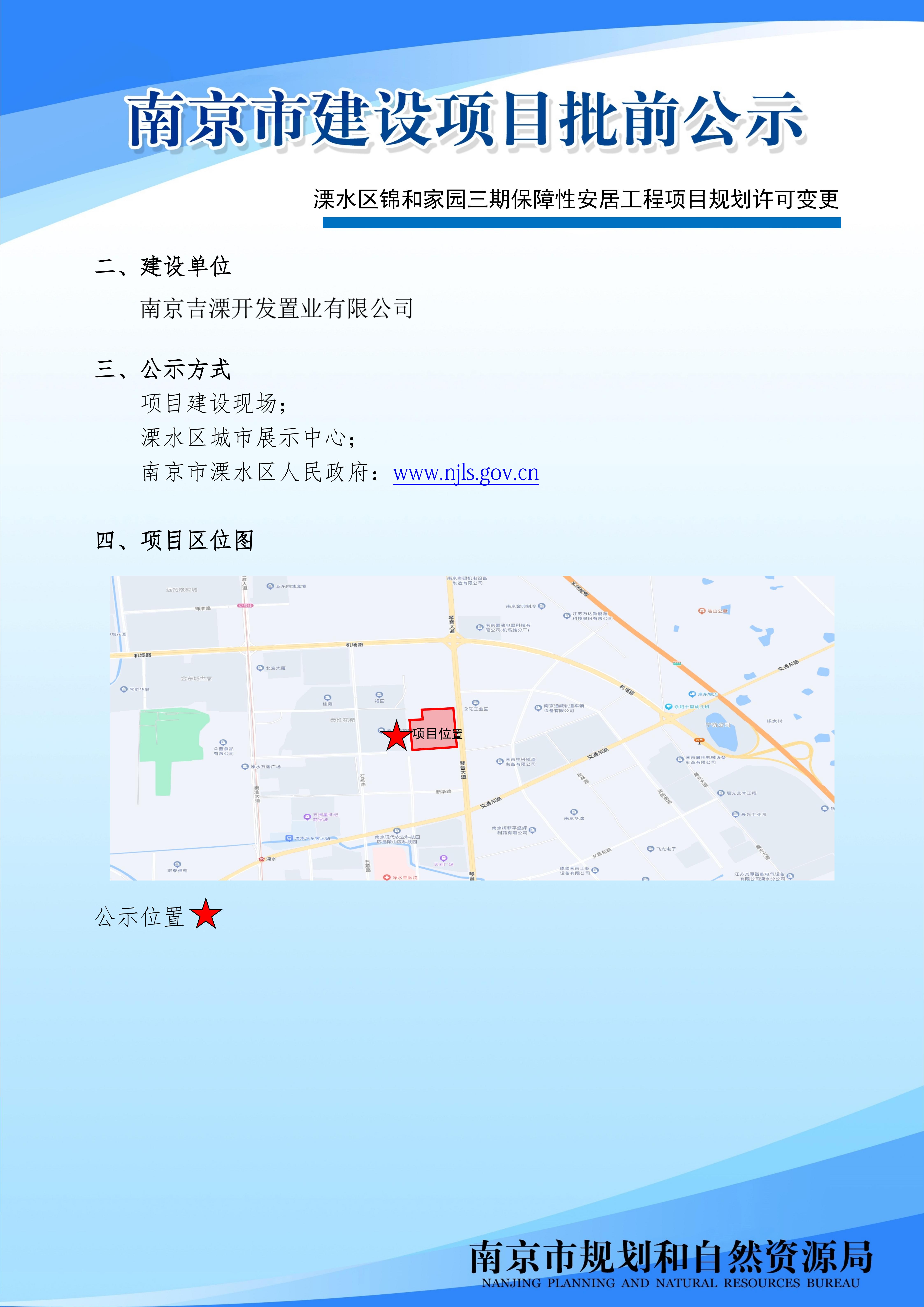 | 信息名称: | 溧水区锦和家园三期保障性安居工程项目规划许可变更批前公示 | ||