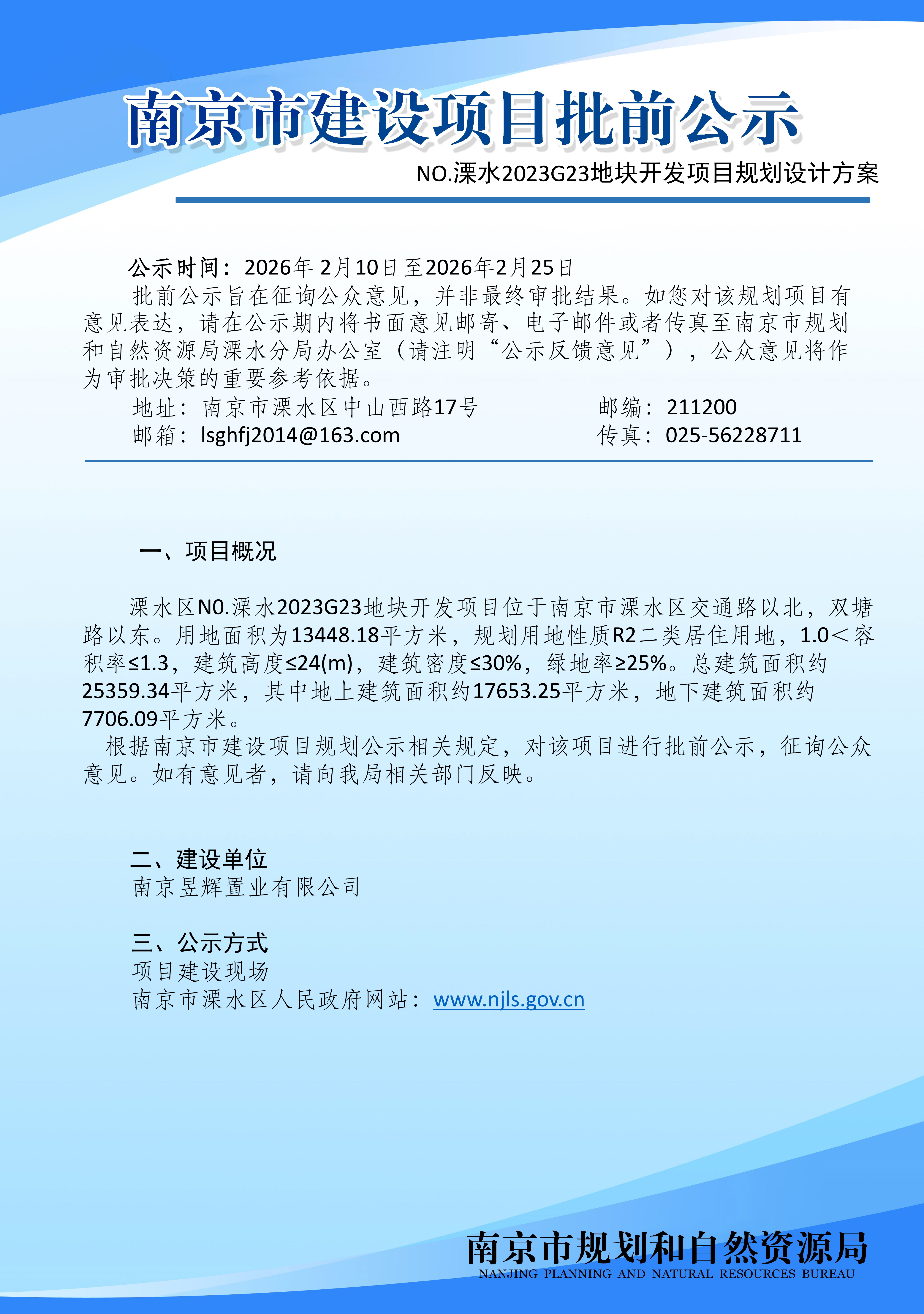NO.溧水2023G23地块开发项目规划设计方案批前公示