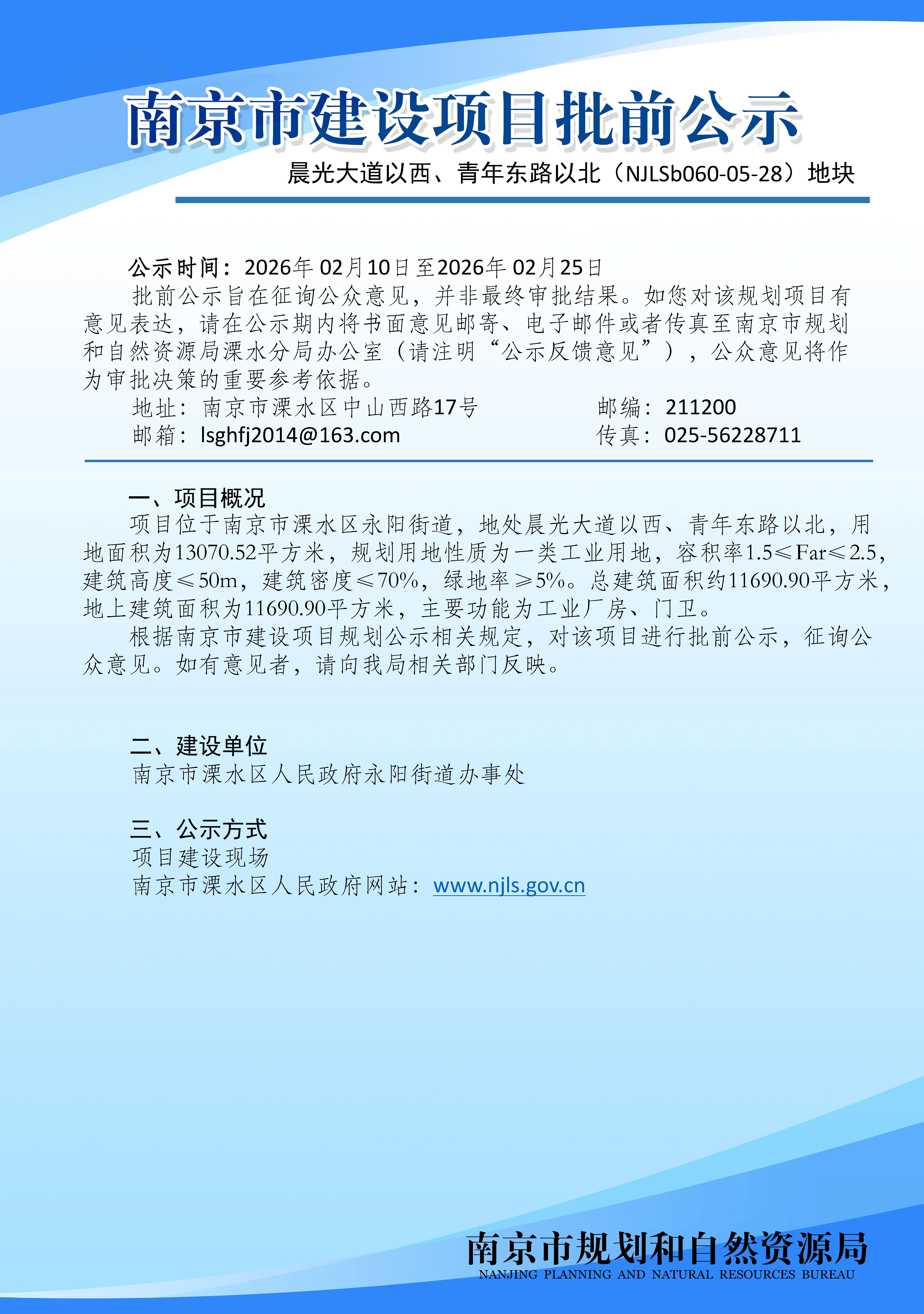 晨光大道以西、青年东路以北(NJLSb060-05-28)地块批前公示