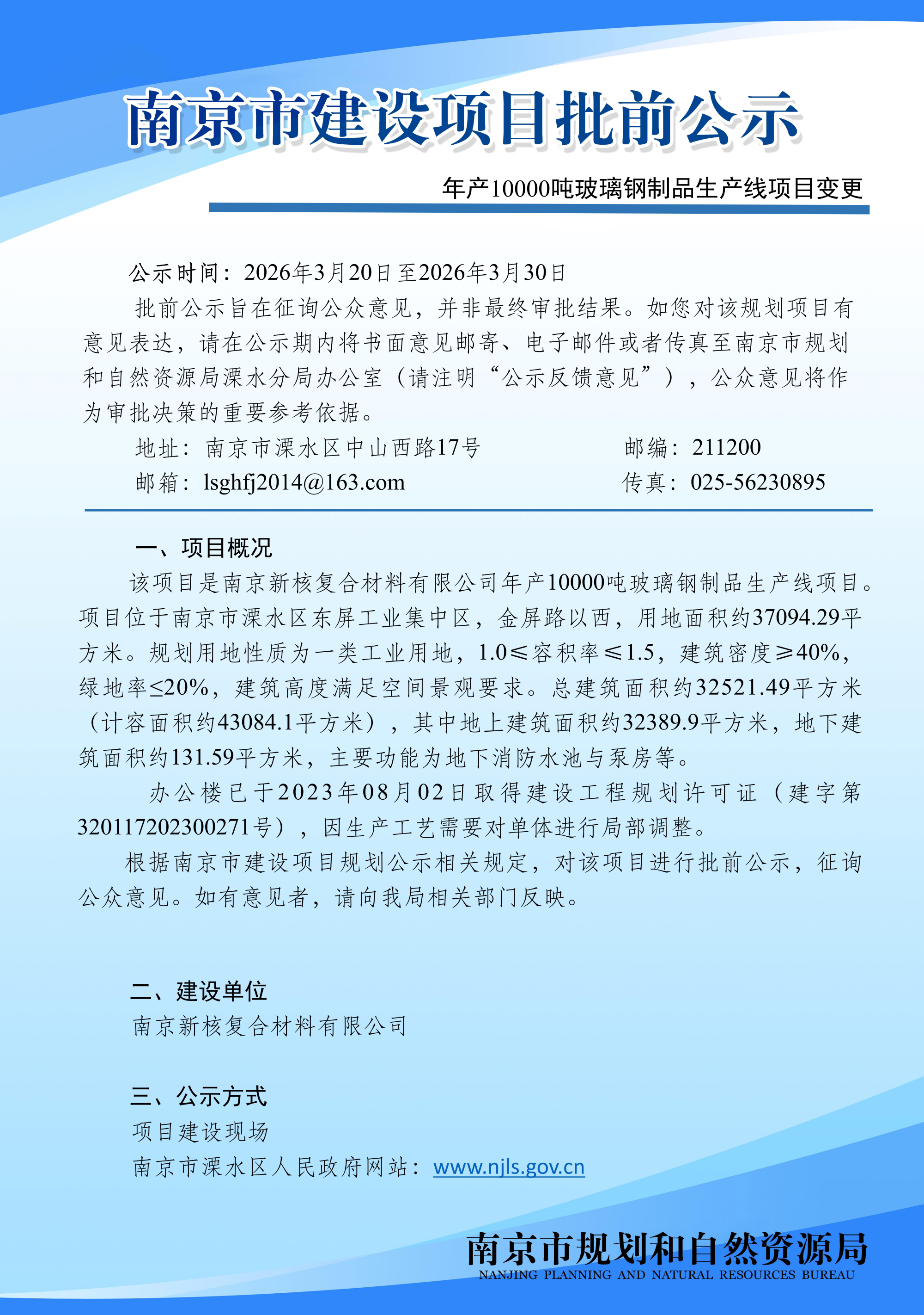 年产10000吨玻璃钢制品生产线项目变更批前公示