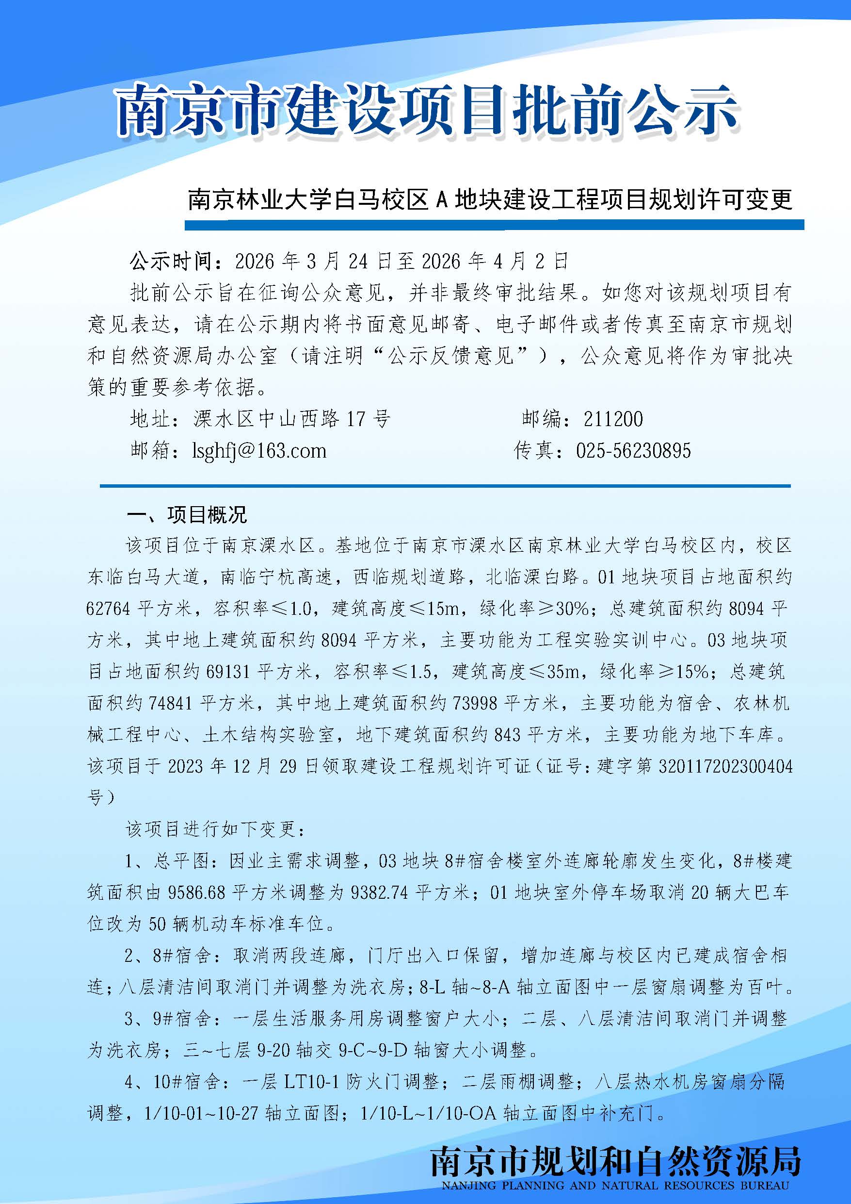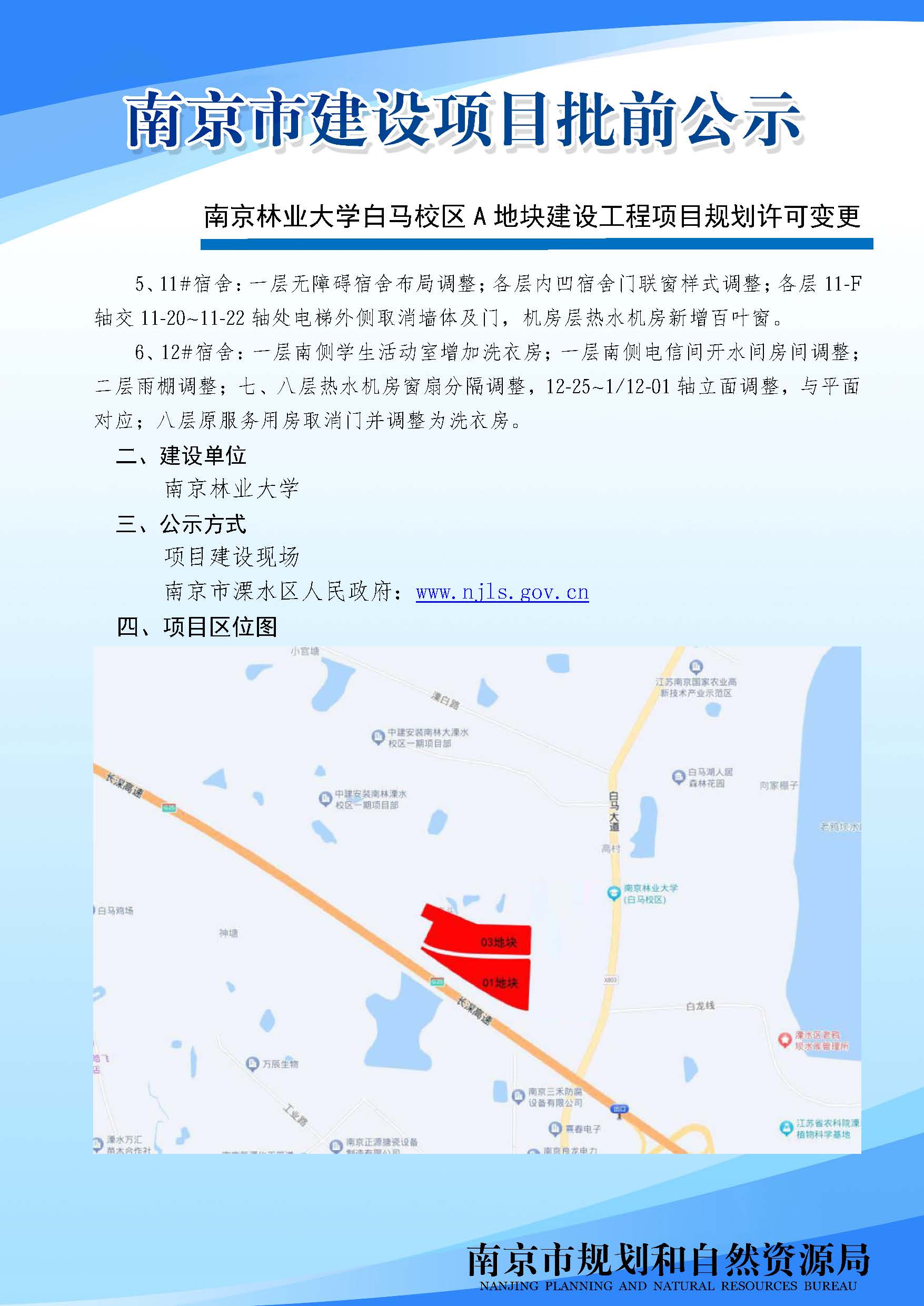 | 信息名称: | 南京林业大学白马校区A地块建设工程项目规划许可变更批前公示 | ||