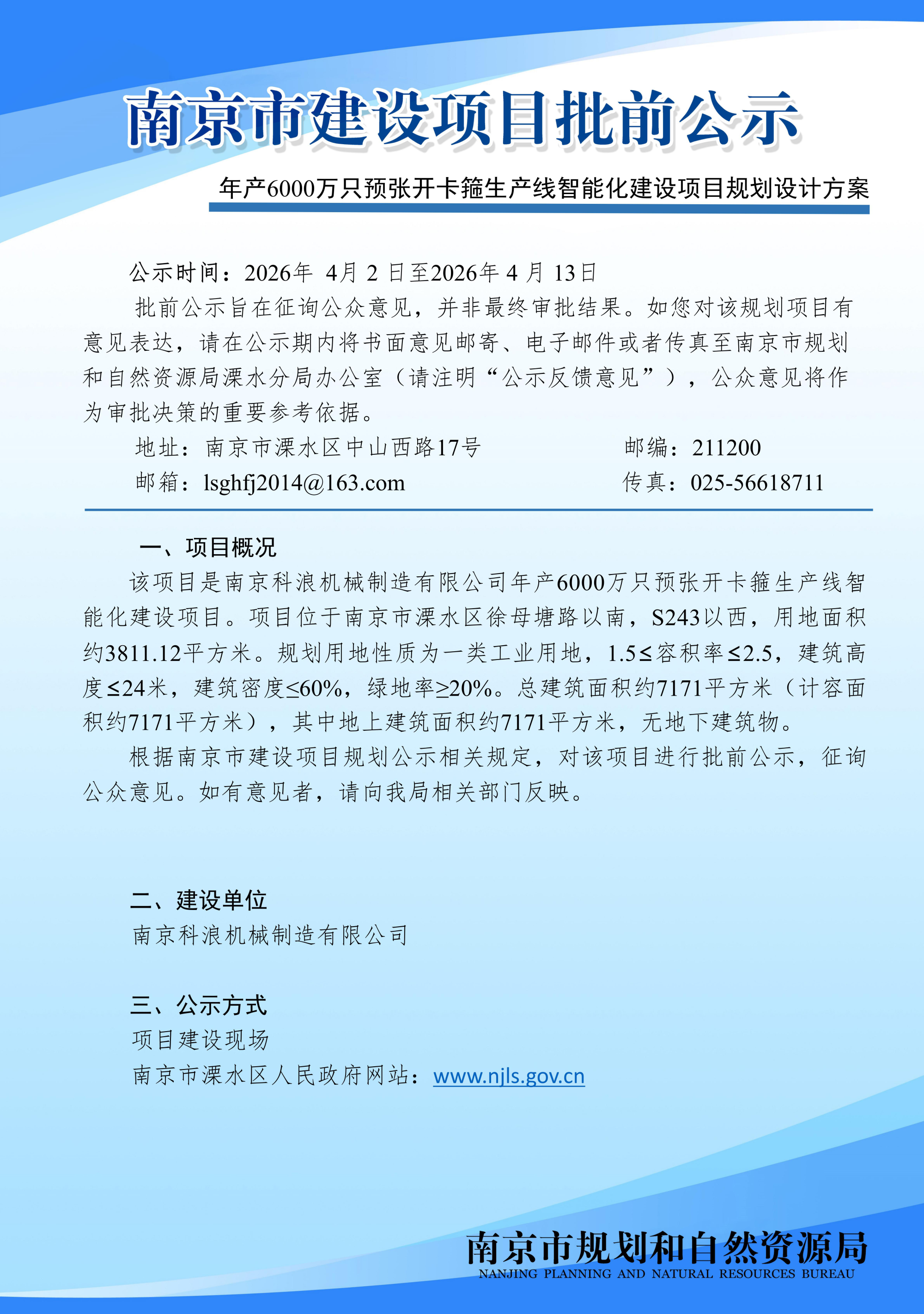 年产6000万只预张开卡箍生产线智能化建设项目规划设计方案批前公示