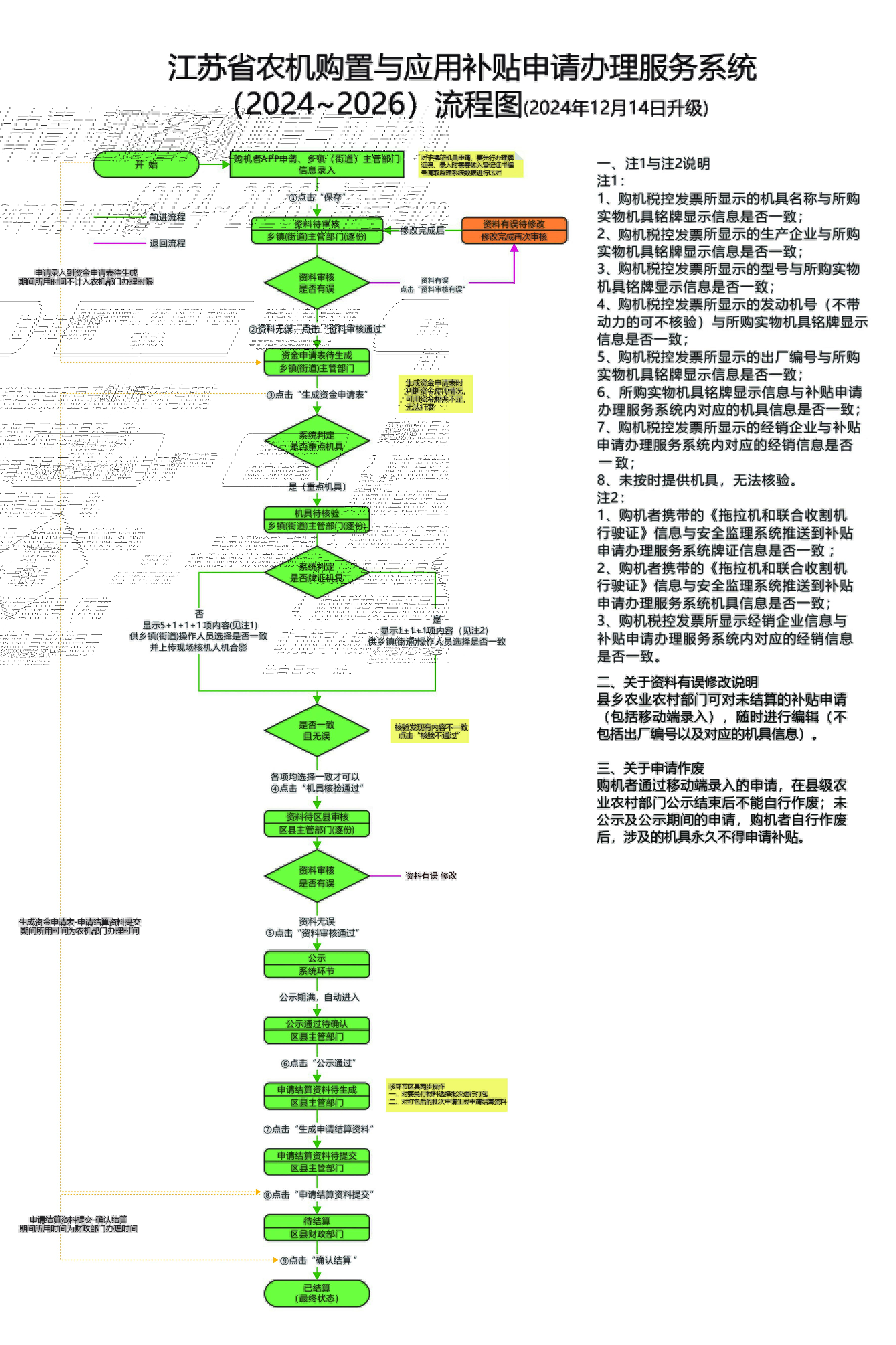 江苏省农机购置与应用补贴申请办理服务系统(2024—2026)流程图(2024年12月14日升级)