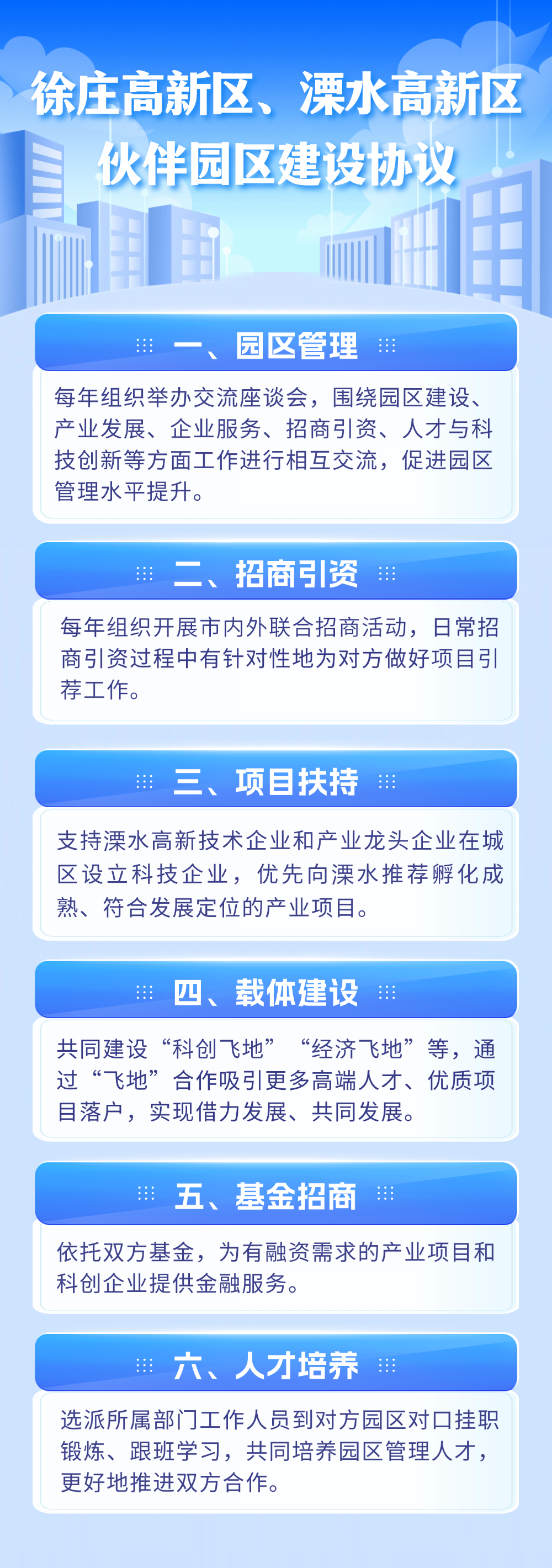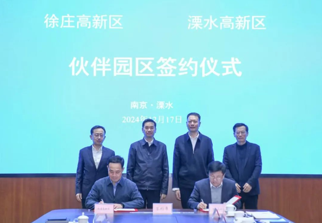 12月17日,溧水高新区与徐庄高新区签订伙伴园区建设协议。玄武区委书记闵一峰、区长张志超,溧水区委书记张蕴等出席。